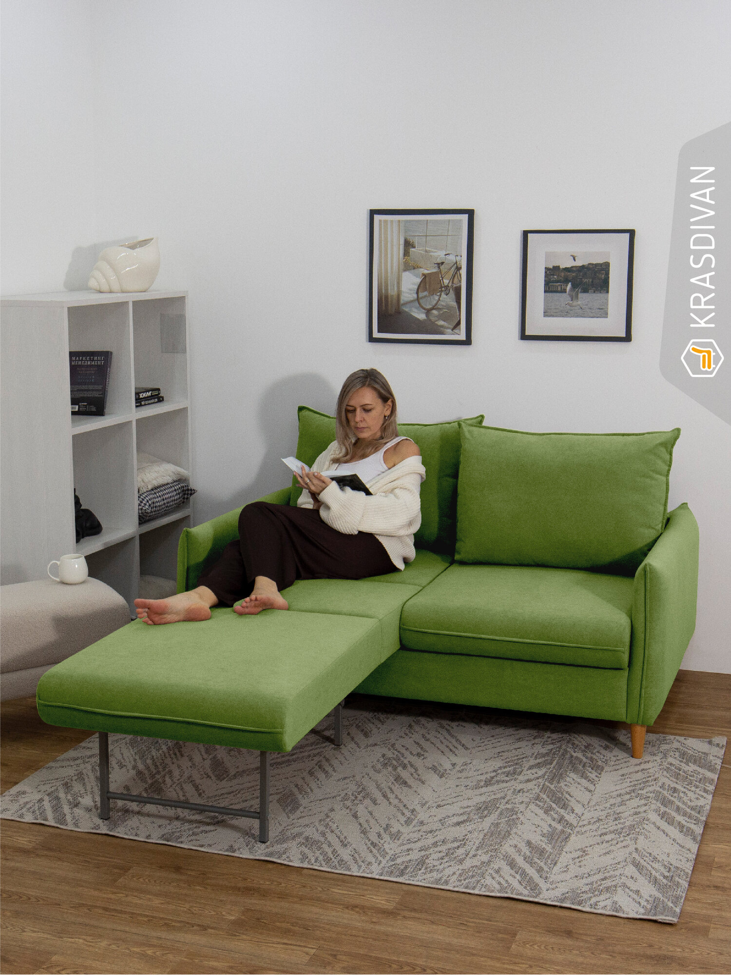 Отзывы на Диван-кровать KRASDIVAN Кайса, размер 160 см, со спальным местом, велюр Бонита 14 Светло-зеленый