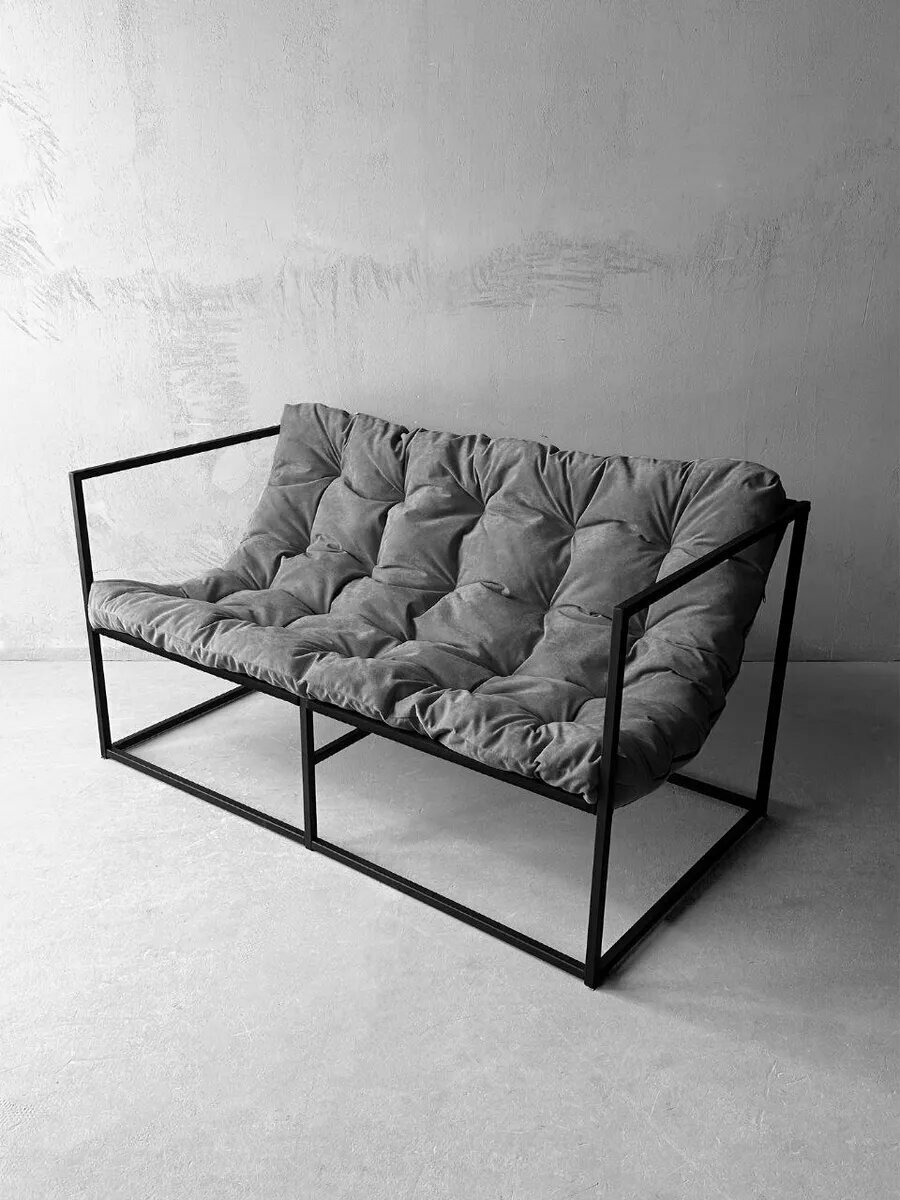 10 цен на Диван лофт прямой, уличный, в офис, на балкон, на веранду, в гостинную, кухонный, минимализм, Лофтовик + велюр серый