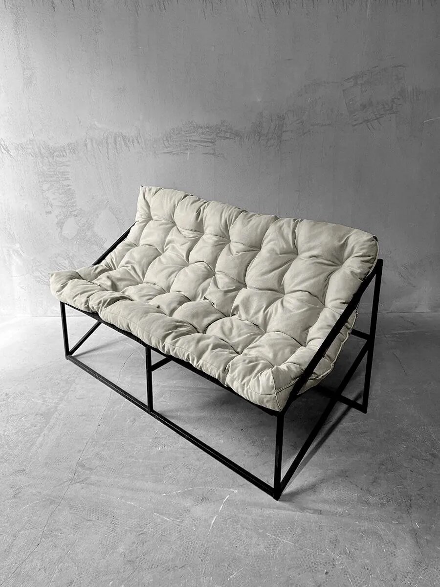 10 цен на Диван лофт прямой, уличный, в офис, на балкон, на веранду, в гостинную, кухонный, минимализм, Слэш + велюр молочный