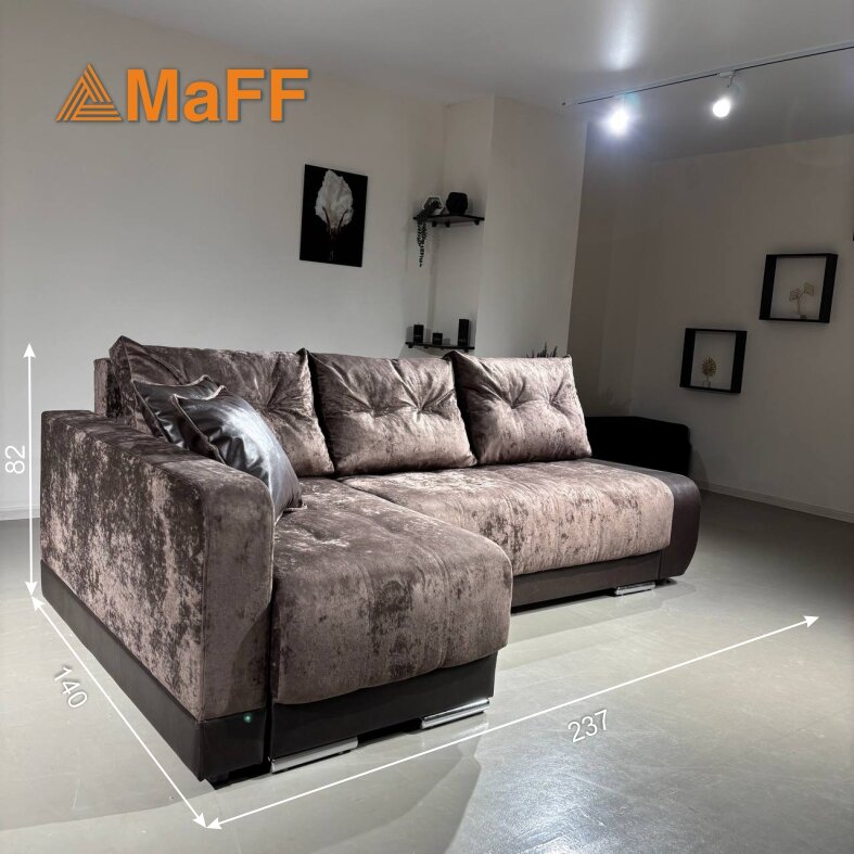 Диван, Диван-кровать Олимп-3 угловой, коричневый, механизм еврокнижка, правый угол 237х140х82 см информация:
