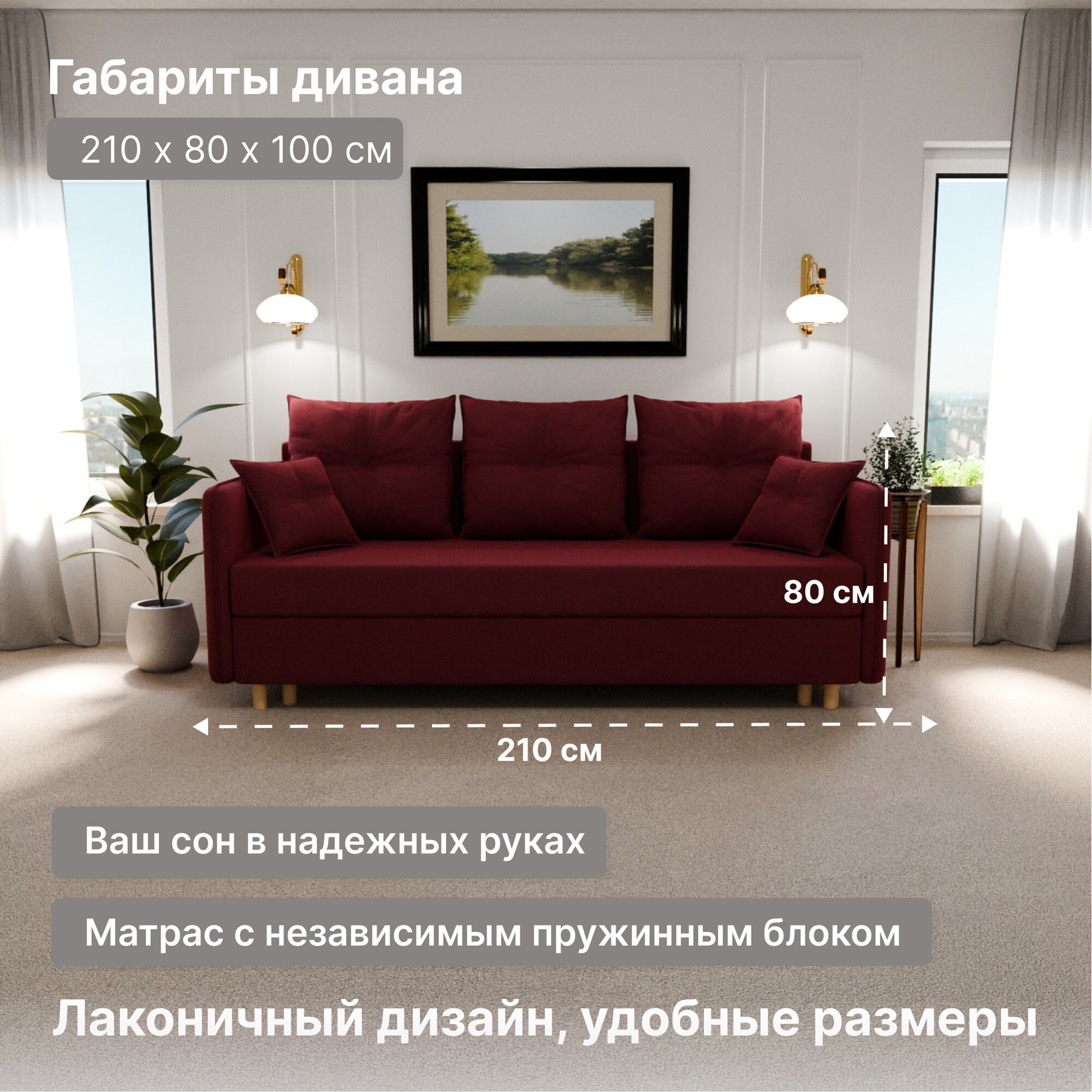 10 цен на Диван, диван-кровать, диван раскладной "Лотос" НПБ, Велютта люкс 41, размеры 210х80х100, бордовый