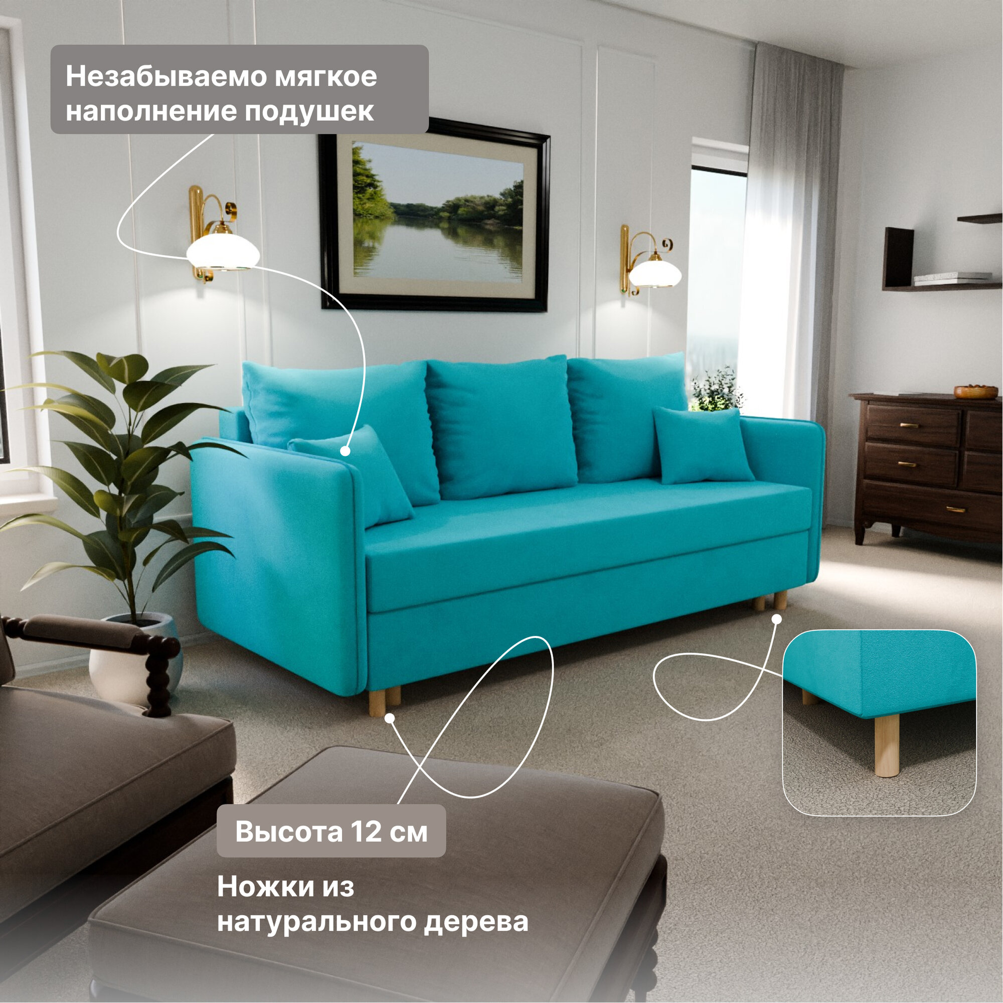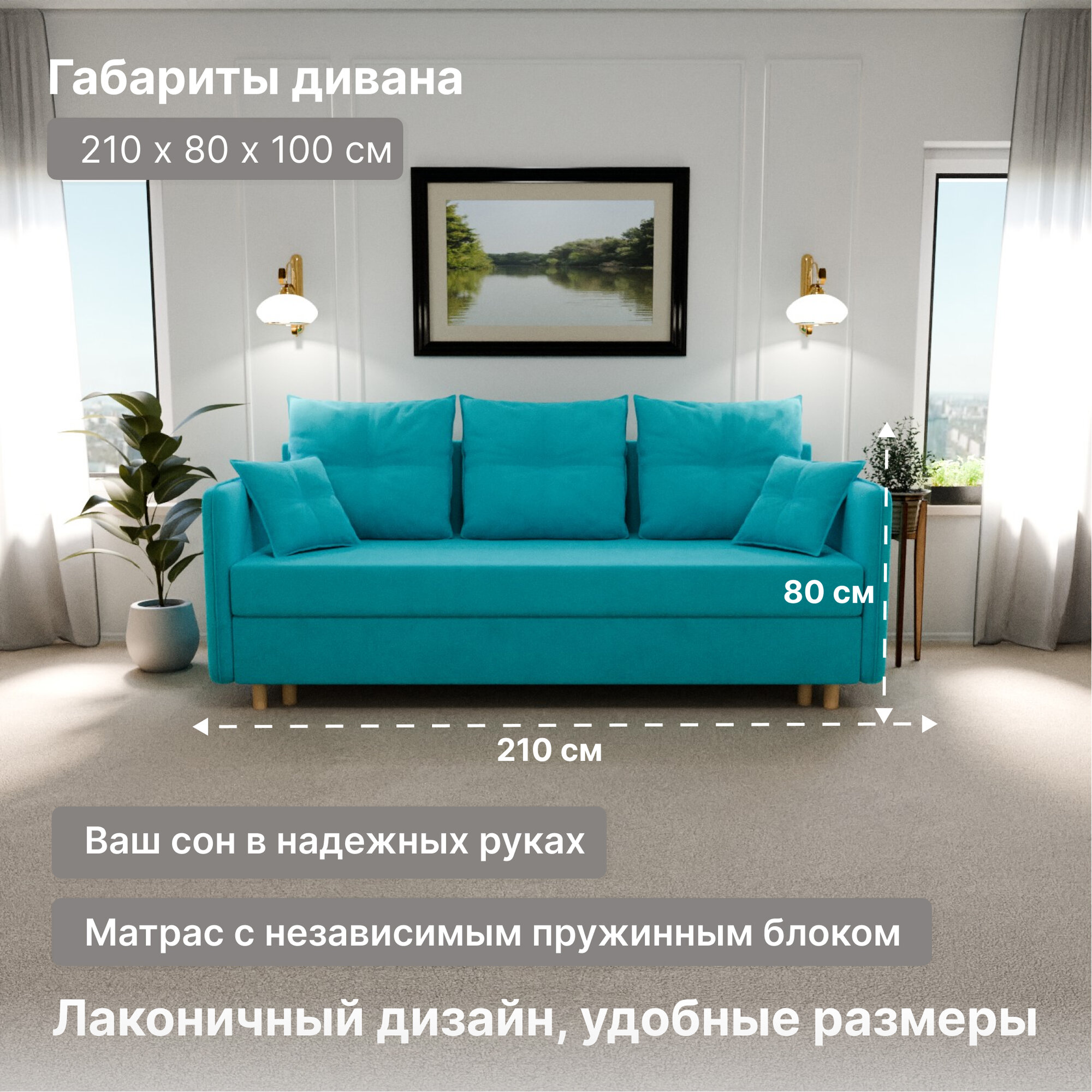 10 цен на Диван, диван-кровать, диван раскладной "Лотос" НПБ, Велютта люкс 44, размеры 210х80х100, бирюзовый