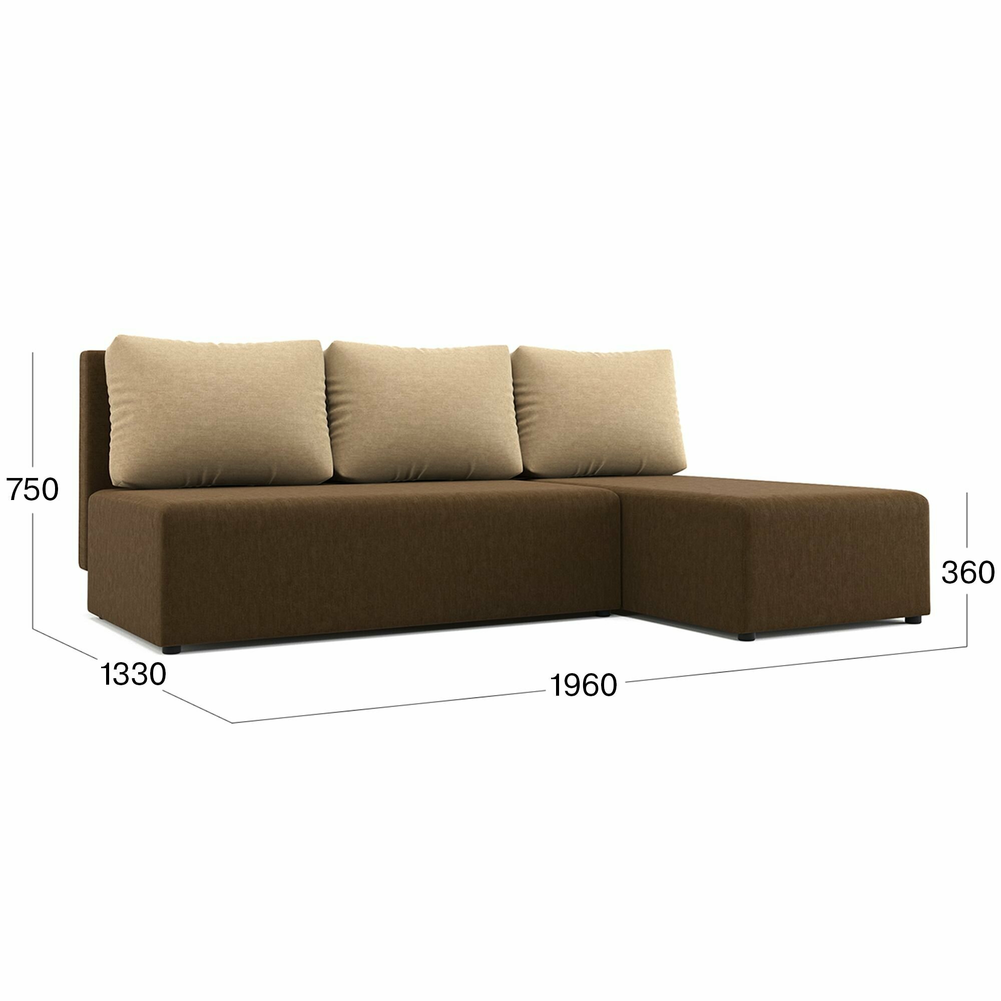 Угловой диван, диван-кровать в гостиную раскладной Beneli леон, бежевый; коричневый, Микровелюр, механизм Еврокнижка, 196х133х75см, 1шт информация: