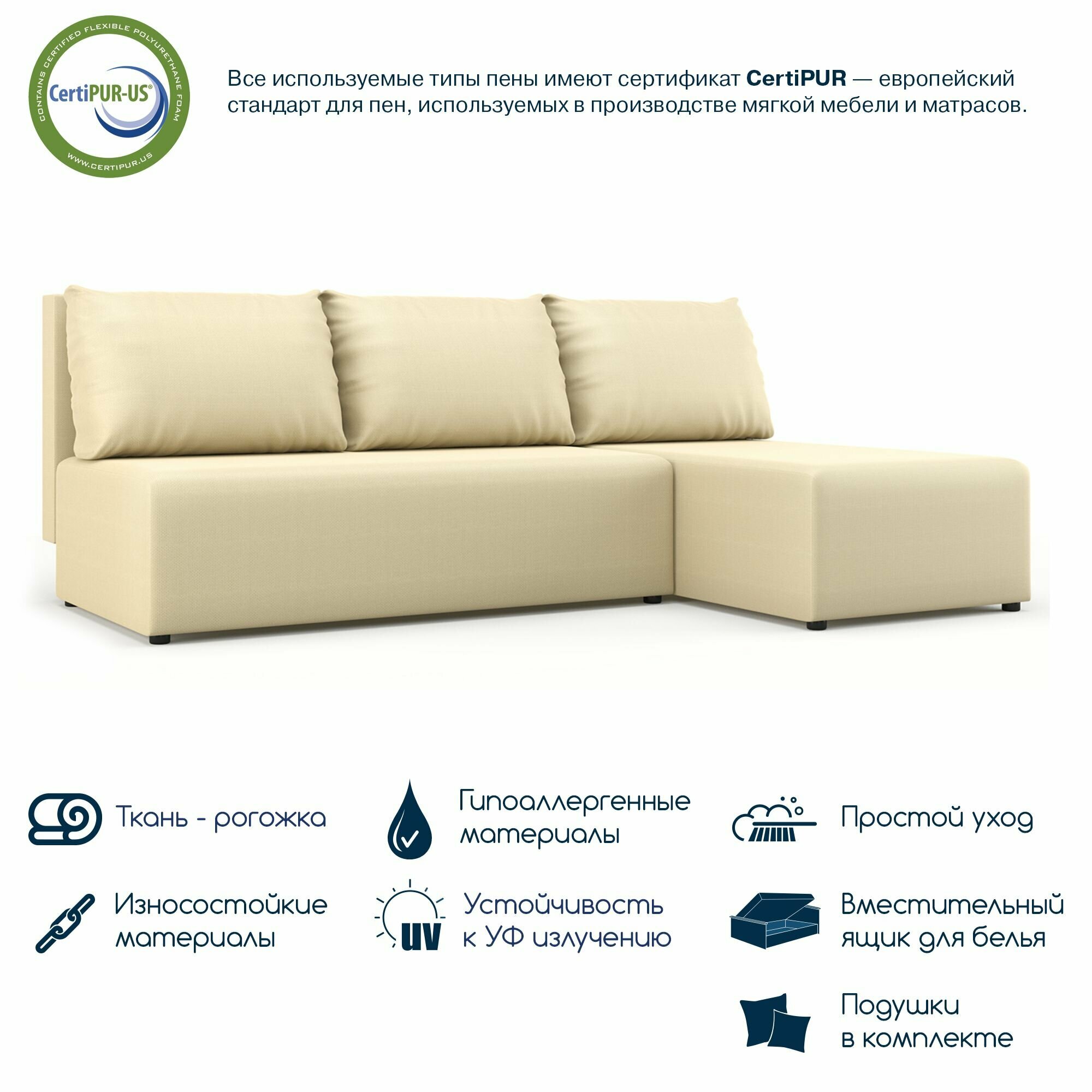 Угловой диван, диван-кровать в гостиную раскладной Beneli леон, светло-бежевый, Рогожка, механизм Еврокнижка, 196х133х75см, 1шт информация:
