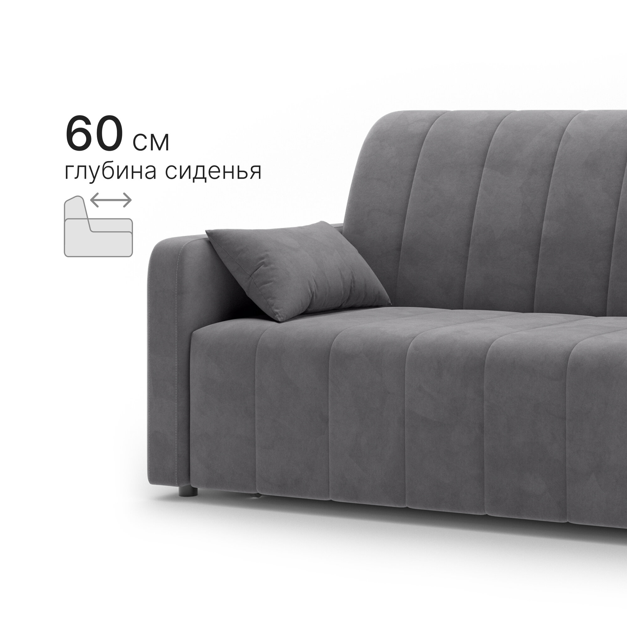 Диван-кровать с ящиком раскладной на металлокаркасе, аккордеон, независимый пружинный блок, 160х200 велюр серый информация:
