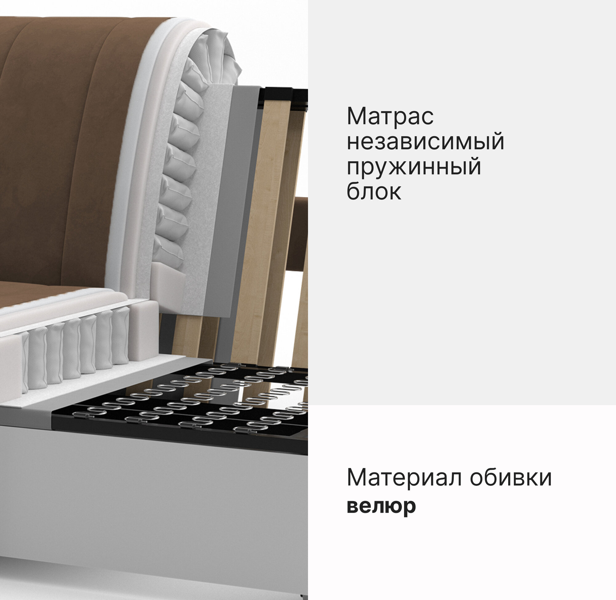 Отзывы на Диван-кровать с ящиком раскладной на металлокаркасе, аккордеон, независимый пружинный блок, 140х200 велюр коричневый