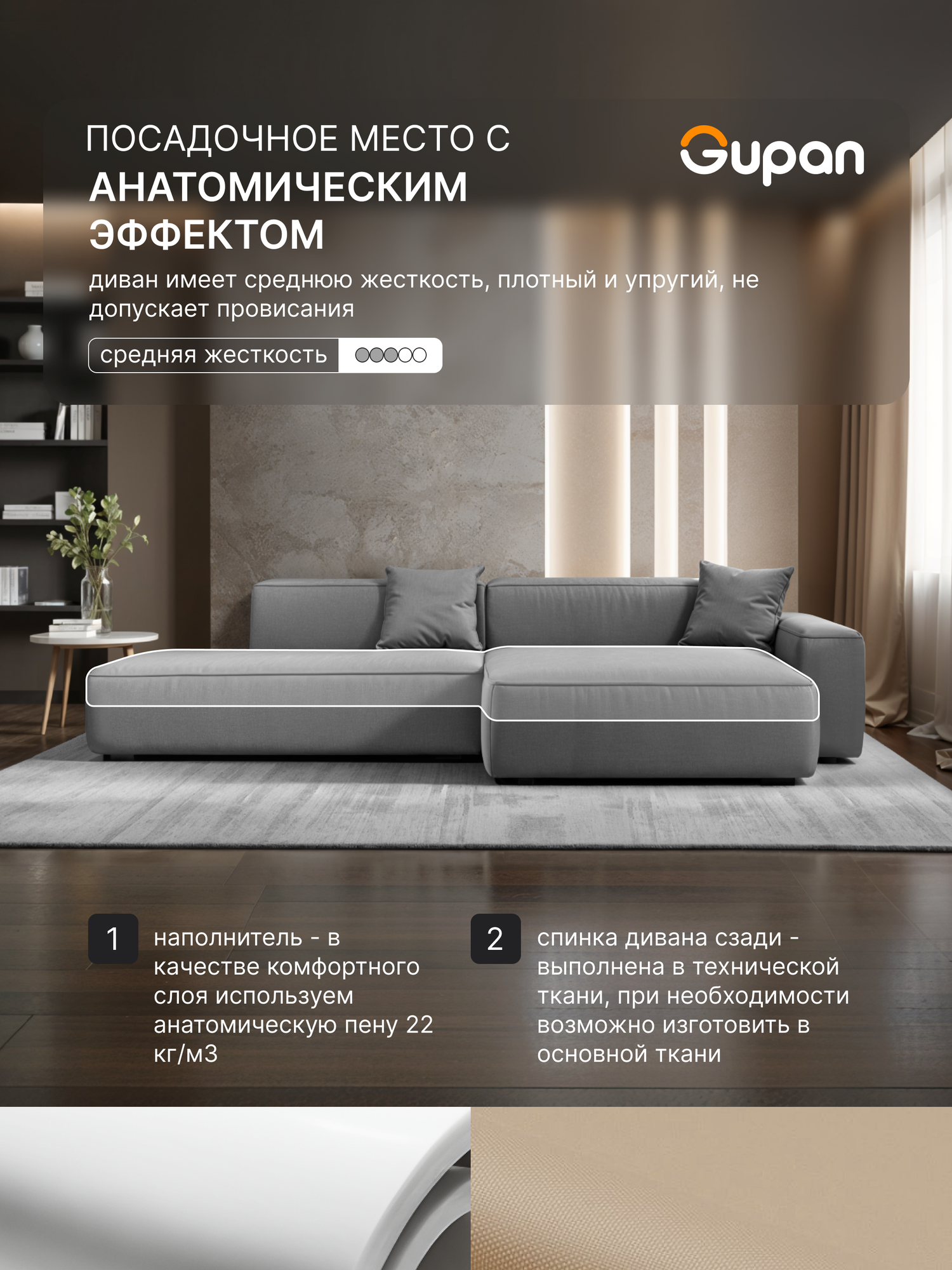 Отзывы на Диван угловой Gupan Flos Велюр Amigo Grey, диван раскладной, механизм еврокнижка, беспружинный, с ящиком для белья, в гостиную, лофт