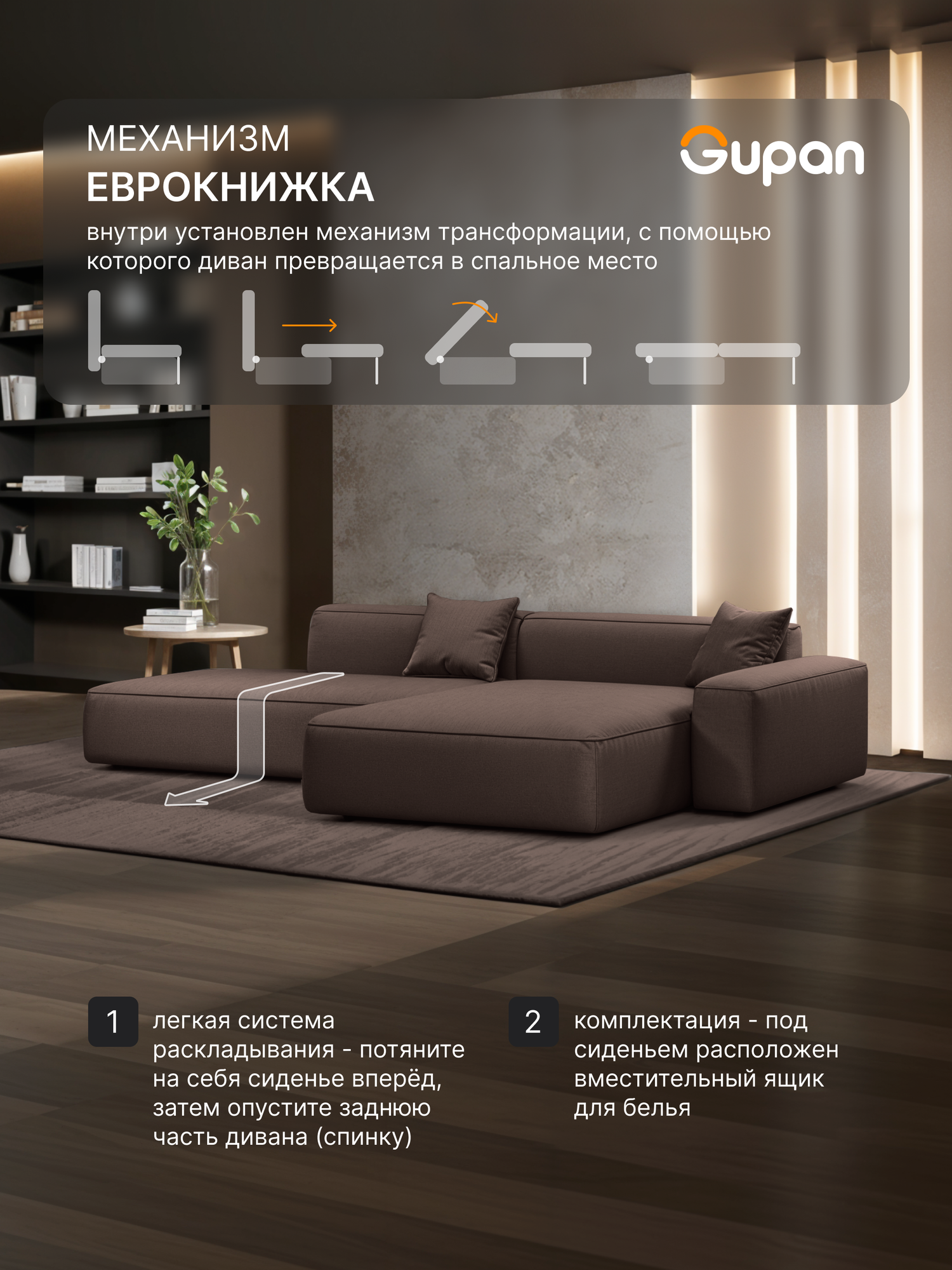 Отзывы на Диван угловой Gupan Flos Велюр Amigo Brown, диван раскладной, механизм еврокнижка, беспружинный, с ящиком для белья, в гостиную, лофт
