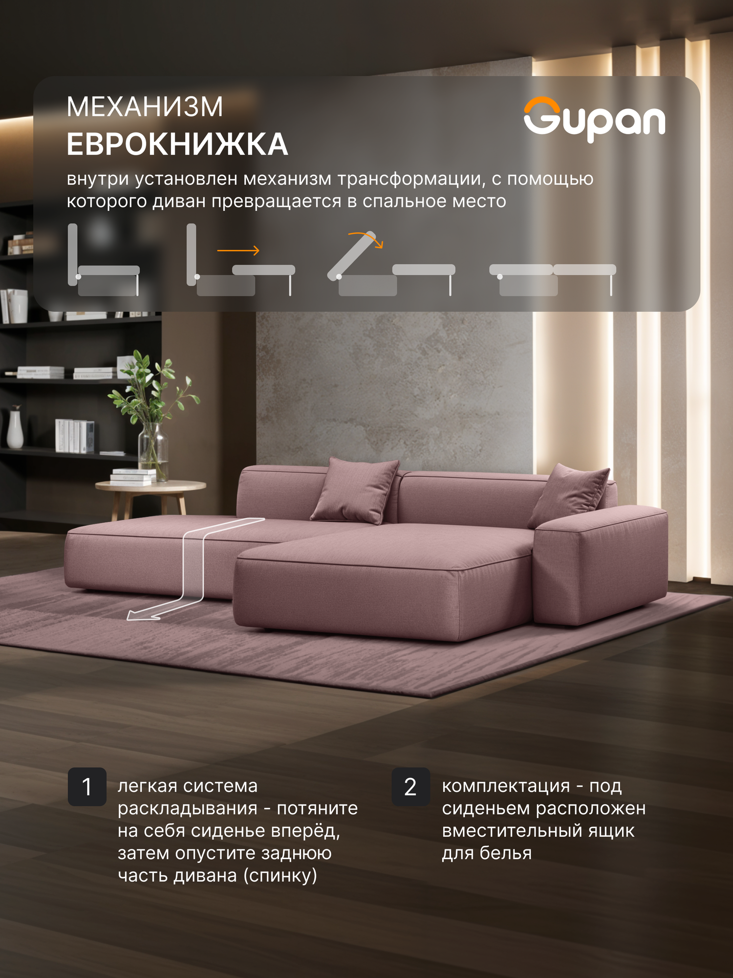 Диван угловой Gupan Flos Велюр Amigo Dimrose, диван раскладной, механизм еврокнижка, беспружинный, с ящиком для белья, в гостиную, лофт 65 205 ₽