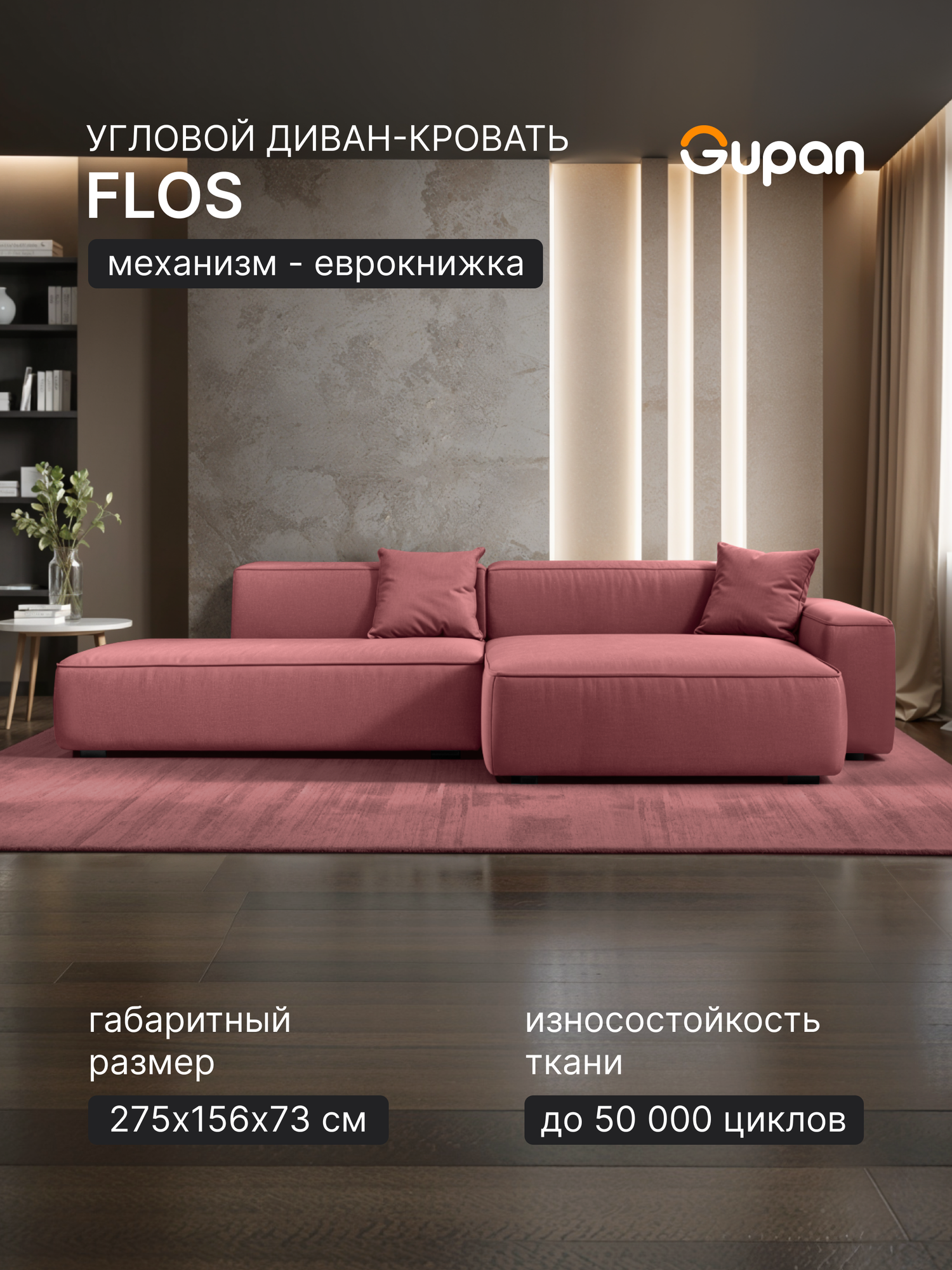 10 цен на Диван угловой Gupan Flos Велюр Amigo Berry, диван раскладной, механизм еврокнижка, беспружинный, с ящиком для белья, в гостиную, лофт