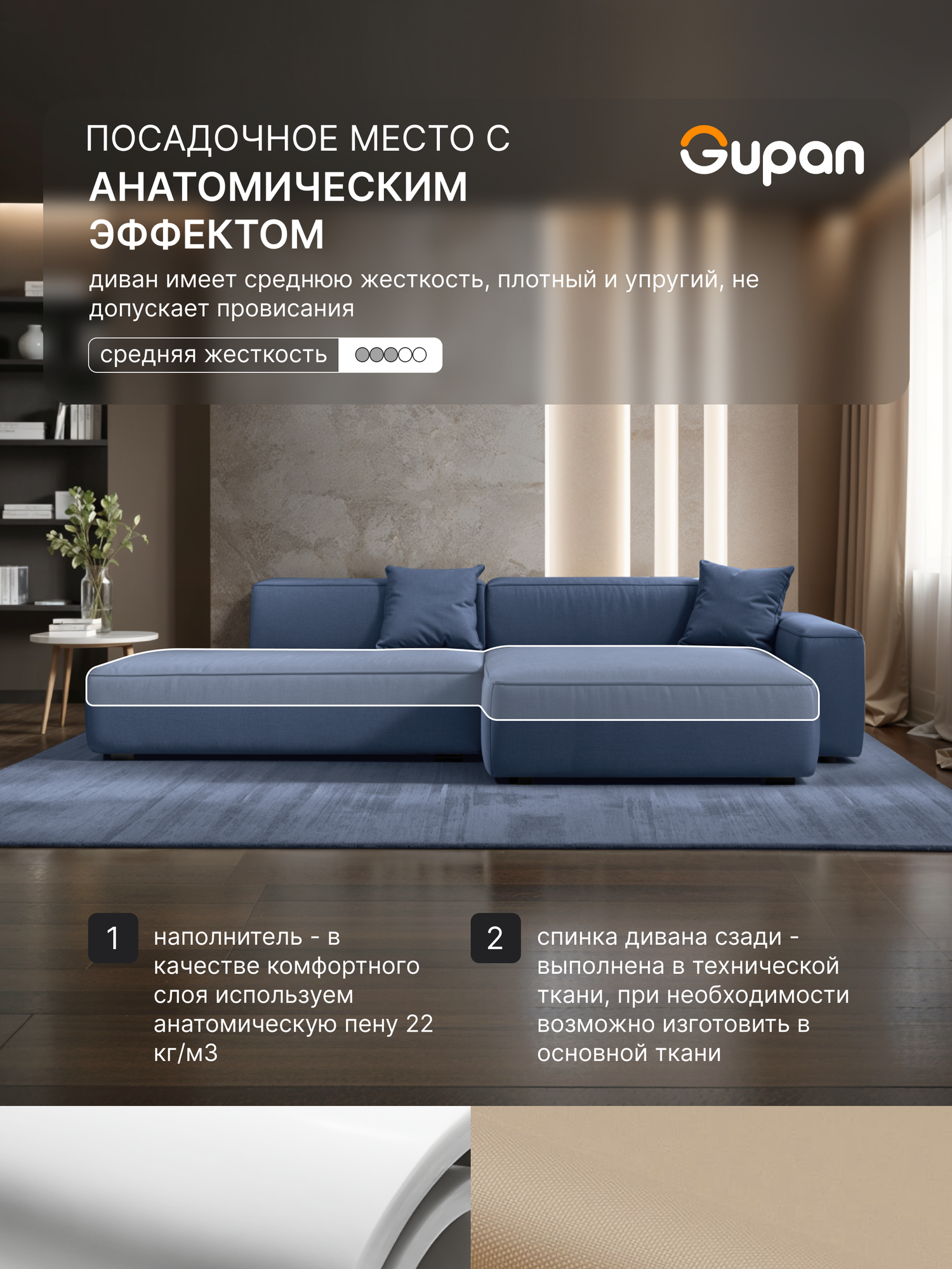 Отзывы на Диван угловой Gupan Flos Велюр Amigo Navy, диван раскладной, механизм еврокнижка, беспружинный, с ящиком для белья, в гостиную, лофт
