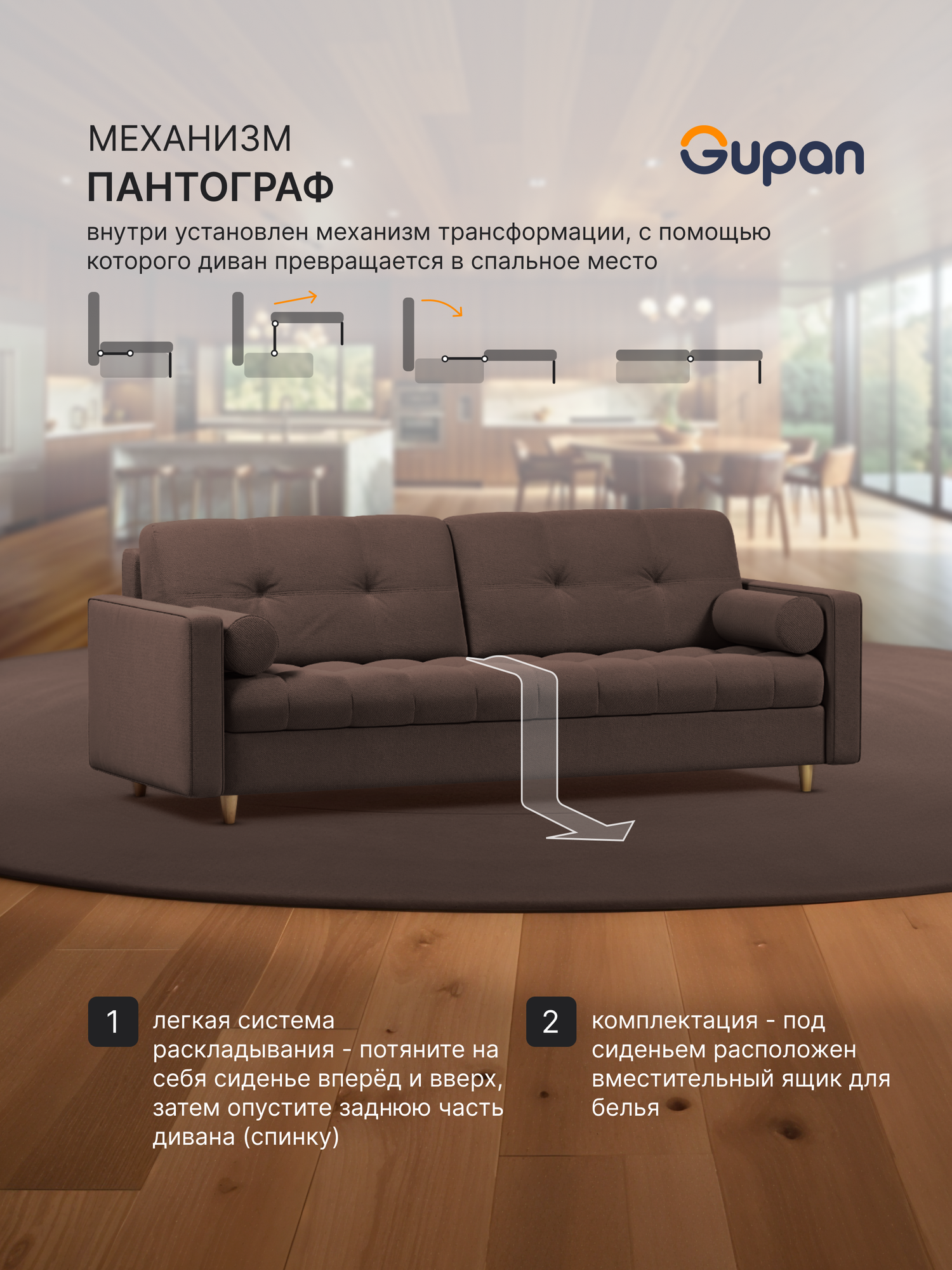 Диван кровать Gupan Итэн Велюр Amigo Coffee, раскладной, механизм пантограф, беспружинный, с ящиком для белья информация: