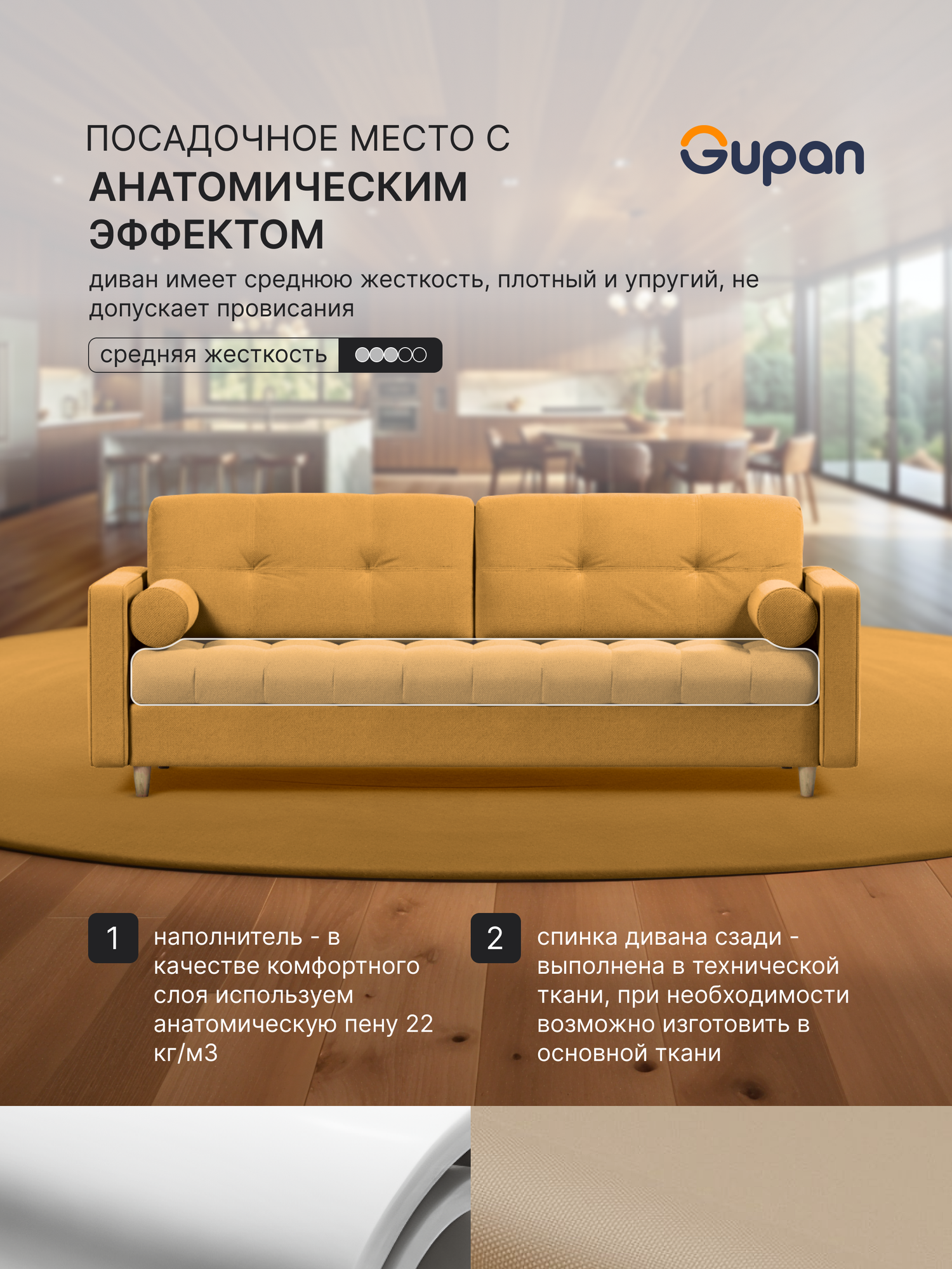 Диван кровать Gupan Итэн Велюр Amigo Yellow, раскладной, механизм пантограф, беспружинный, с ящиком для белья информация: