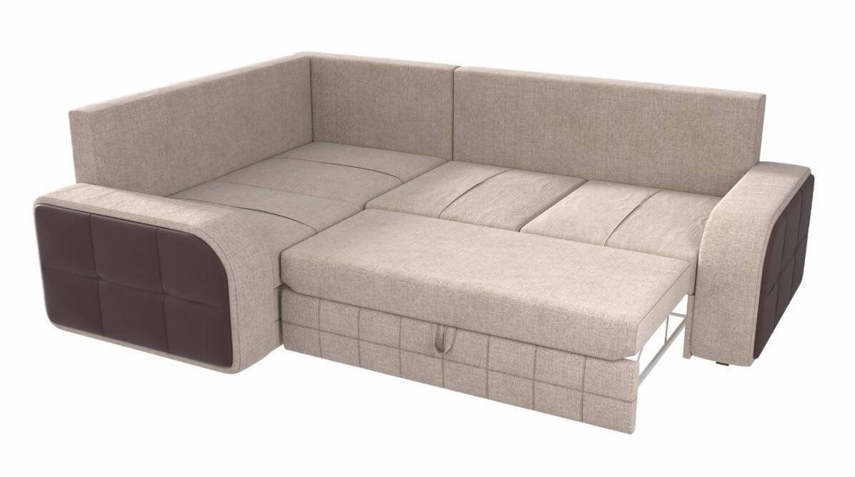 10 цен на Угловой диван Николь №2 Рогожка Бежевый-Эккожа Коричневый угол левый, Ящик для белья, 268х195х95см