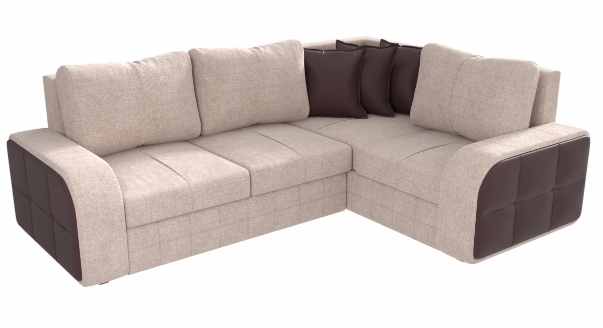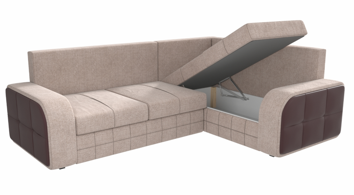 Угловой диван Николь №2 Рогожка Коричневый/Экокожа Бежевый угол правый, Ящик для белья, 268х195х95см 46 900 ₽