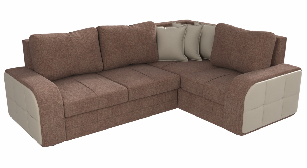 10 цен на Угловой диван Николь №2 Рогожка Коричневый/Экокожа Бежевый угол правый, Ящик для белья, 268х195х95см