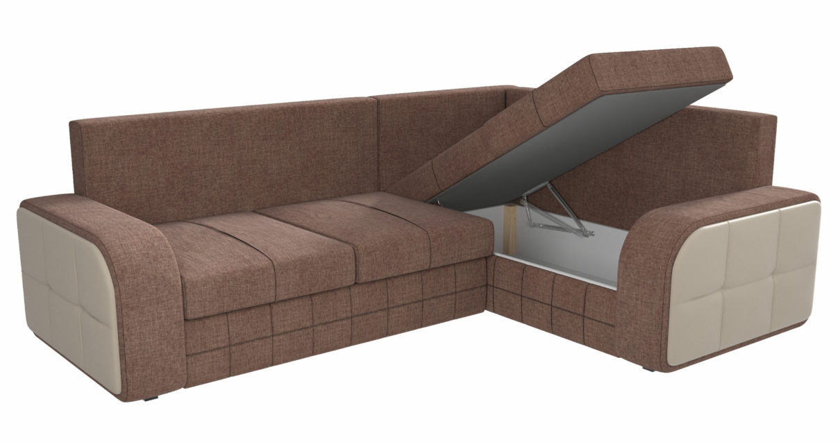 Угловой диван Николь №2 Рогожка Коричневый/Экокожа Бежевый угол правый, Ящик для белья, 268х195х95см информация: