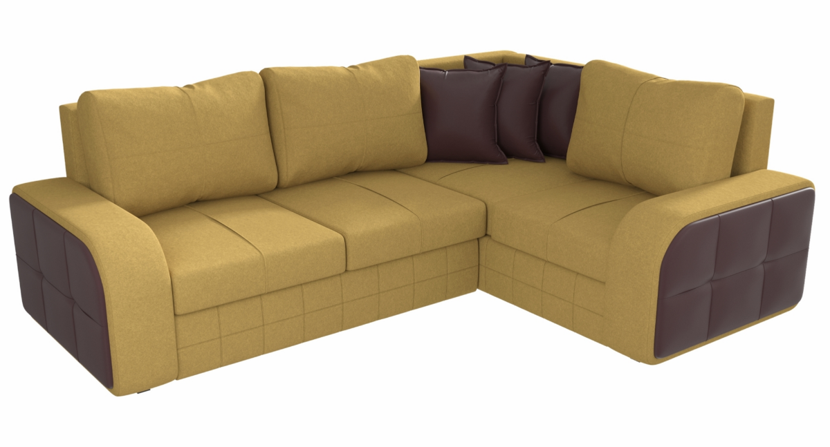 10 цен на Угловой диван Николь №2 Вельвет Горчичный/Экокожа Коричневый Угол правый, Ящик для белья, 268х195х95см