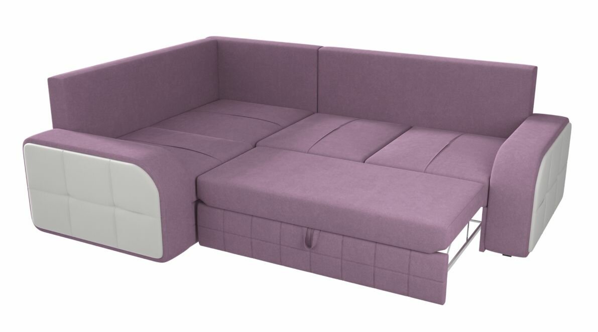10 цен на Угловой диван Николь №2 Вельвет Сиреневый-Экокожа Белый угол левый, Ящик для белья, 268х195х95см