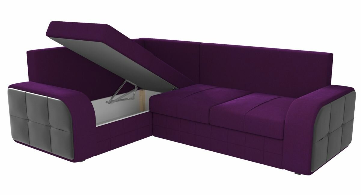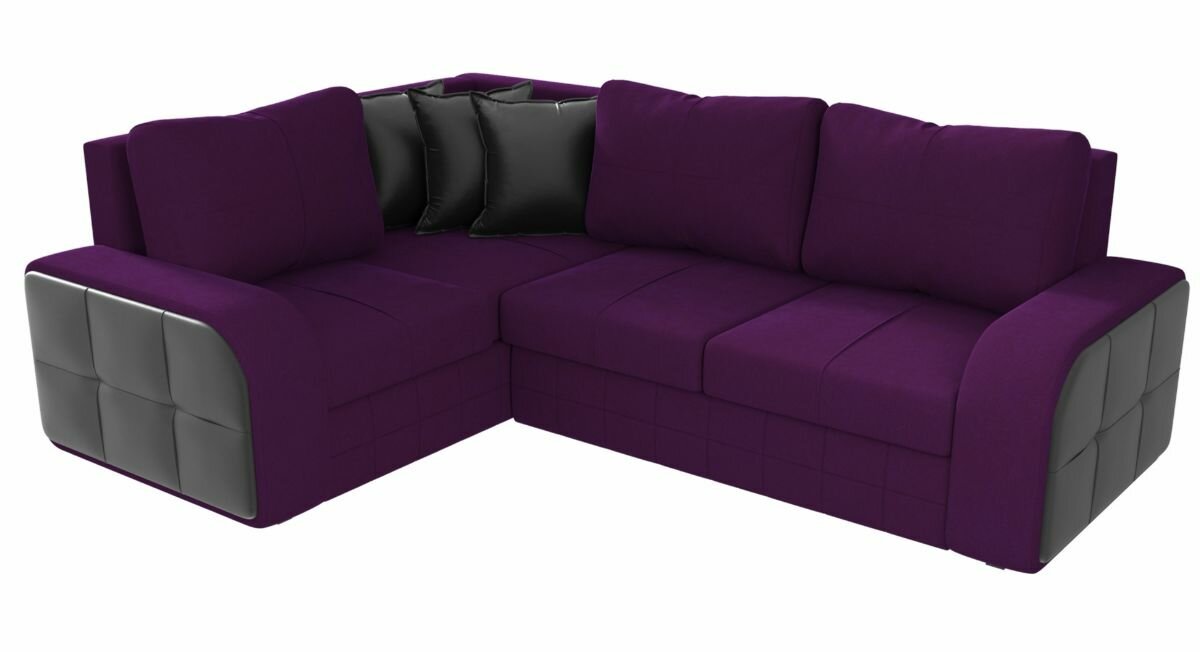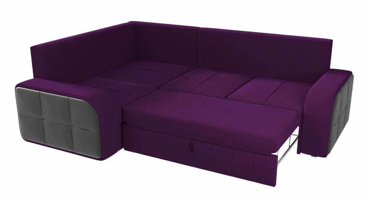 10 цен на Угловой диван Николь №2 Вельвет Фиолетовый-Экокожа Черный угол левый, Ящик для белья, 268х195х95см