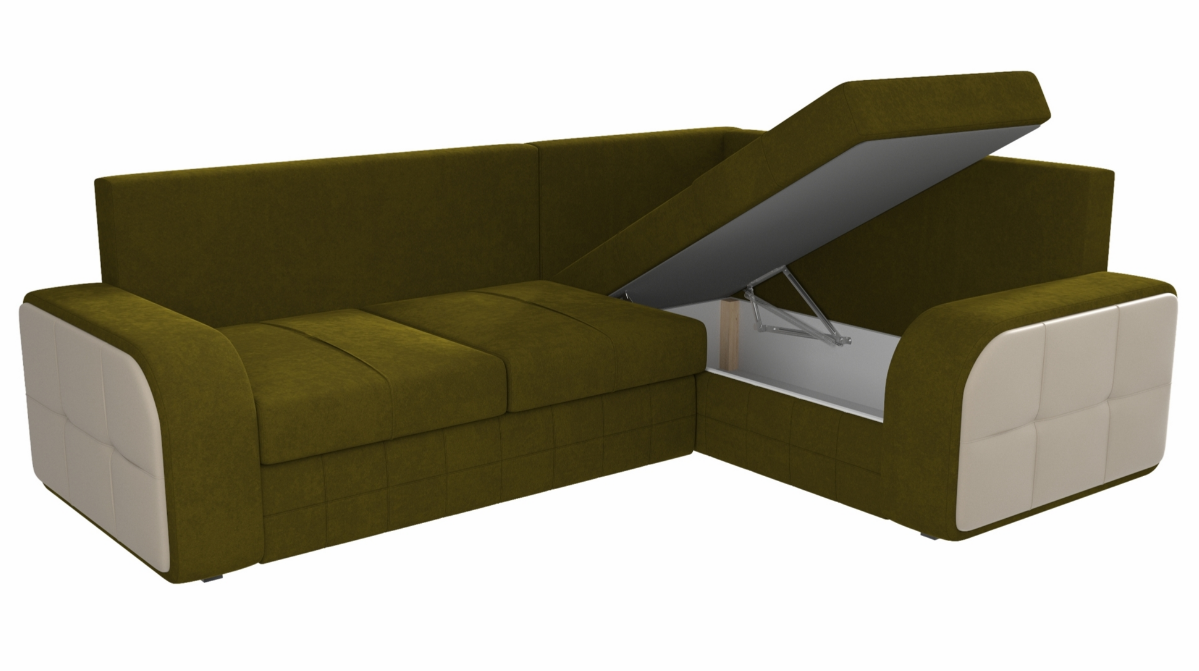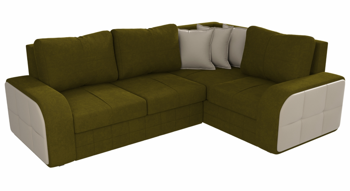 Угловой диван Николь №2 Вельвет Зеленый/Экокожа Бежевый Угол правый, Ящик для белья, 268х195х95см 47 900 ₽