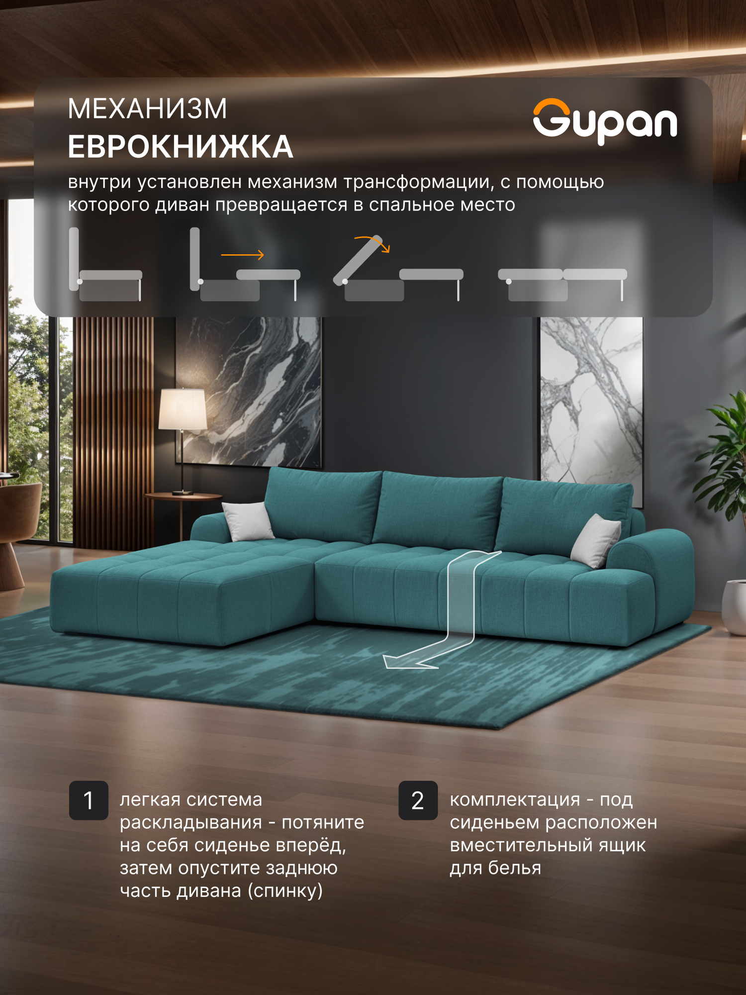 Отзывы на Диван угловой Gupan Lasso Велюр Amigo Lagoon, диван раскладной, механизм еврокнижка, беспружинный, с ящиком для белья, в гостиную, лофт
