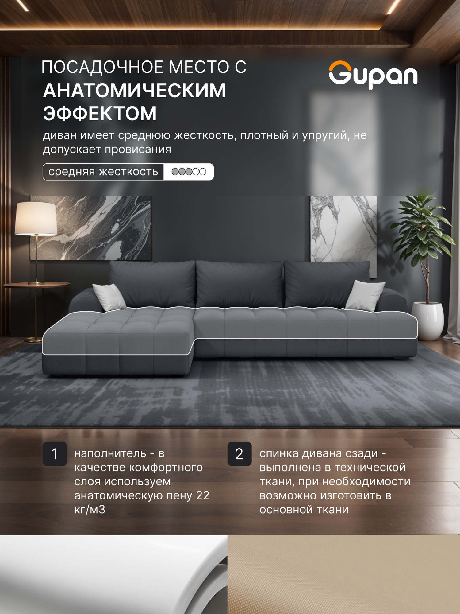 Отзывы на Диван угловой Gupan Lasso Велюр Amigo Grafit, диван раскладной, механизм еврокнижка, беспружинный, с ящиком для белья, в гостиную, лофт