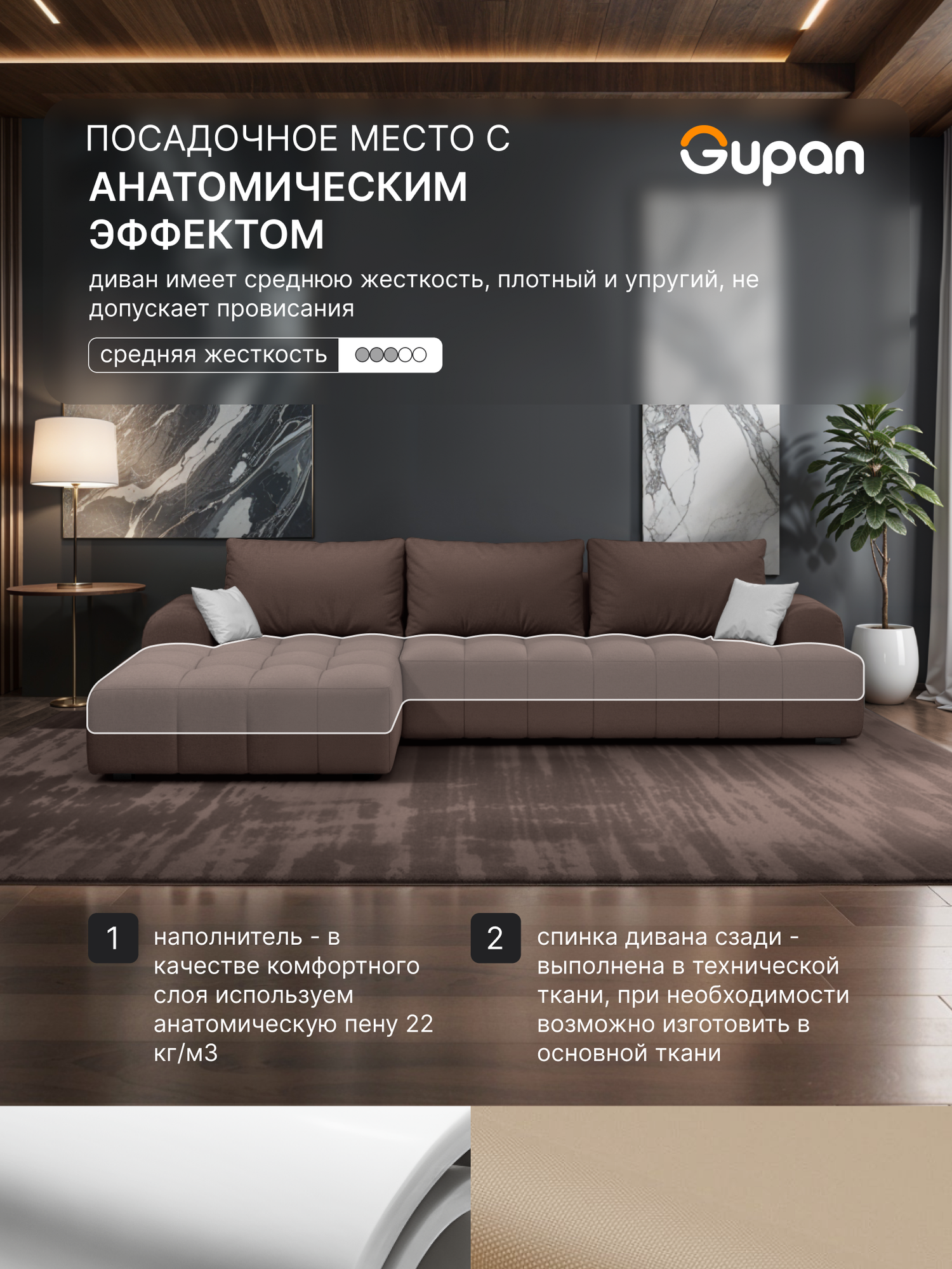 Отзывы на Диван угловой Gupan Lasso Велюр Amigo Brown, диван раскладной, механизм еврокнижка, беспружинный, с ящиком для белья, в гостиную, лофт