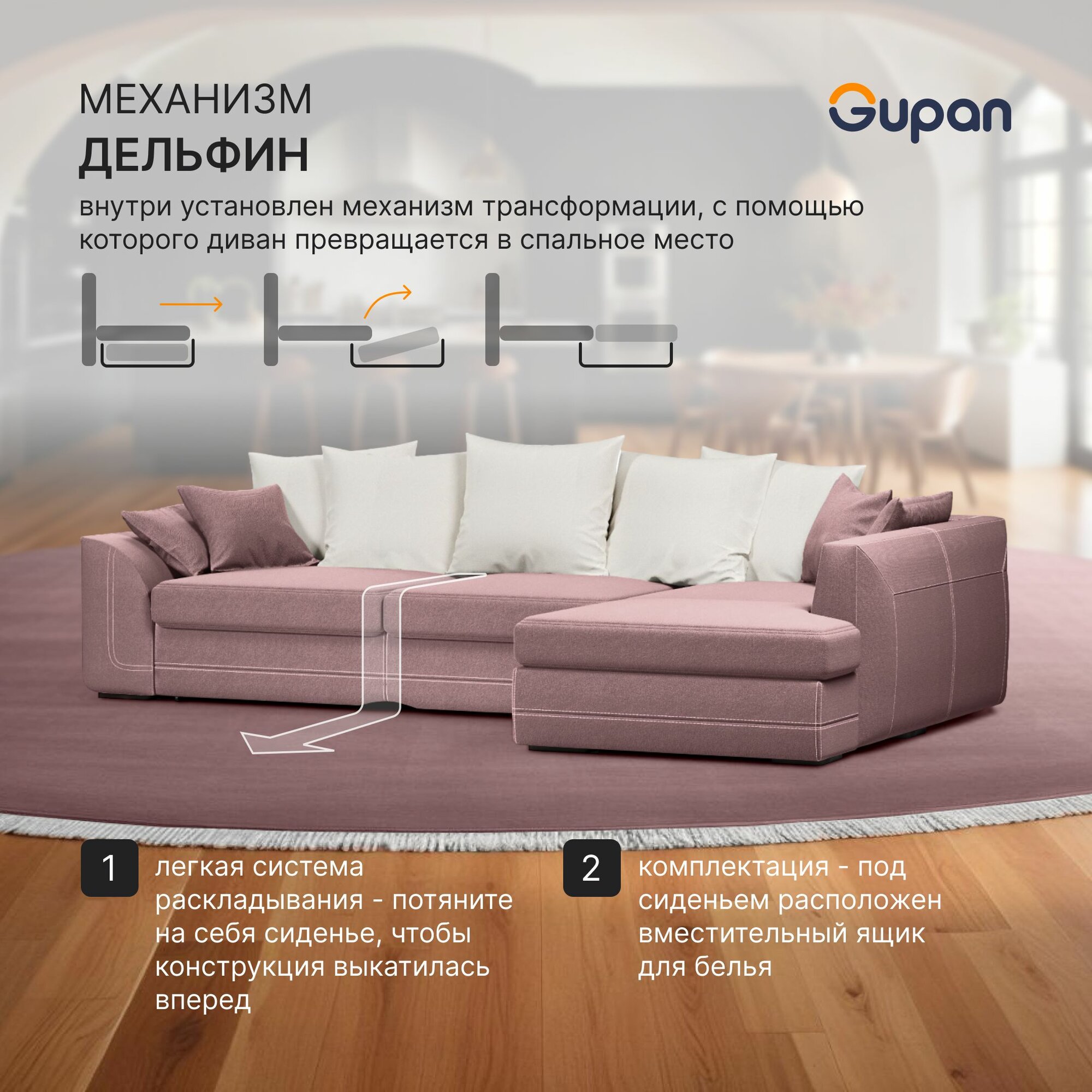 Диван угловой Gupan Калифорния Велюр Amigo Dimrose, раскладной, механизм дельфин, беспружинный, с ящиком для белья 74 817 ₽