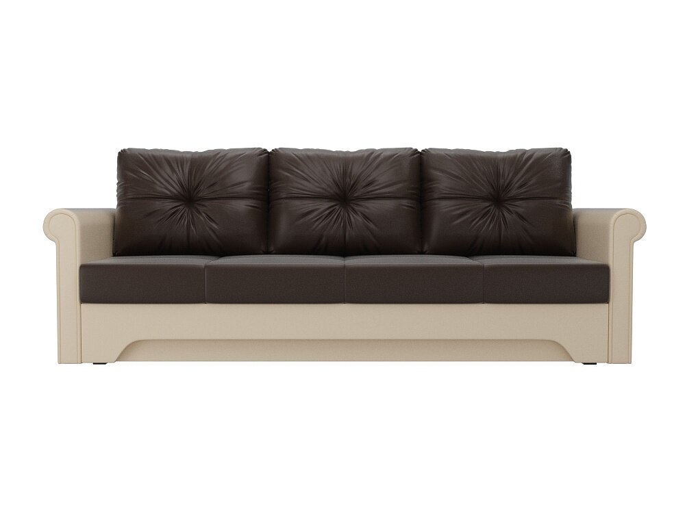 10 цен на Прямой диван Европа Коричнево-Бежевый Экокожа, еврокнижка, 225х101х88 см, с ящиком для белья