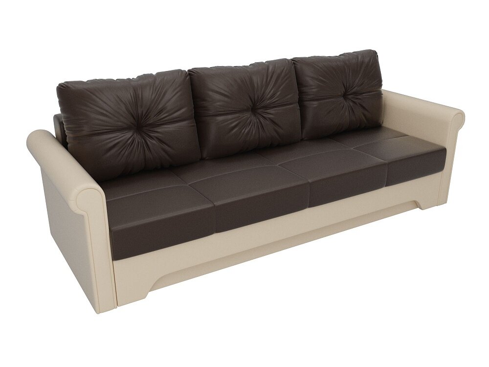 Прямой диван Европа Коричнево-Бежевый Экокожа, еврокнижка, 225х101х88 см, с ящиком для белья информация:
