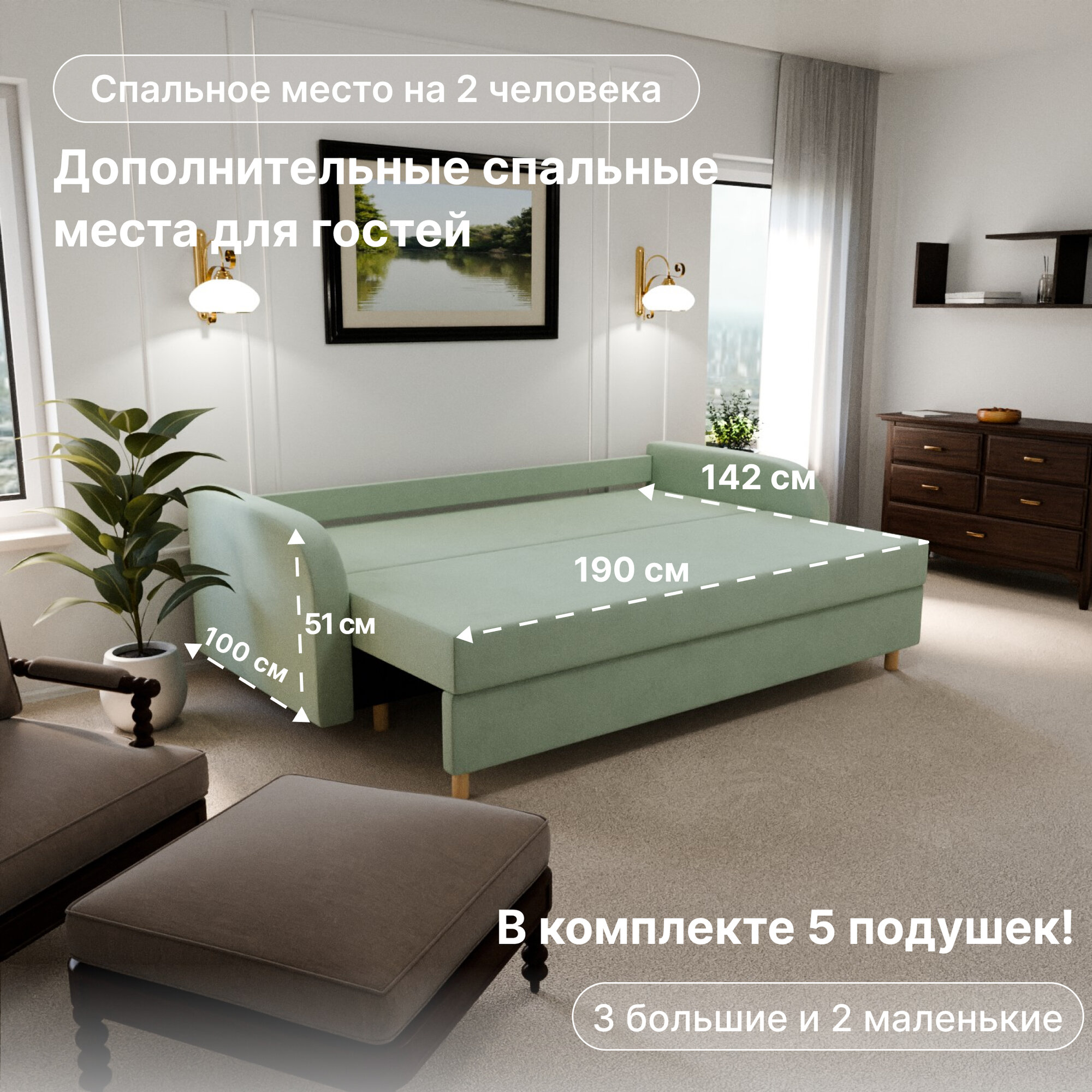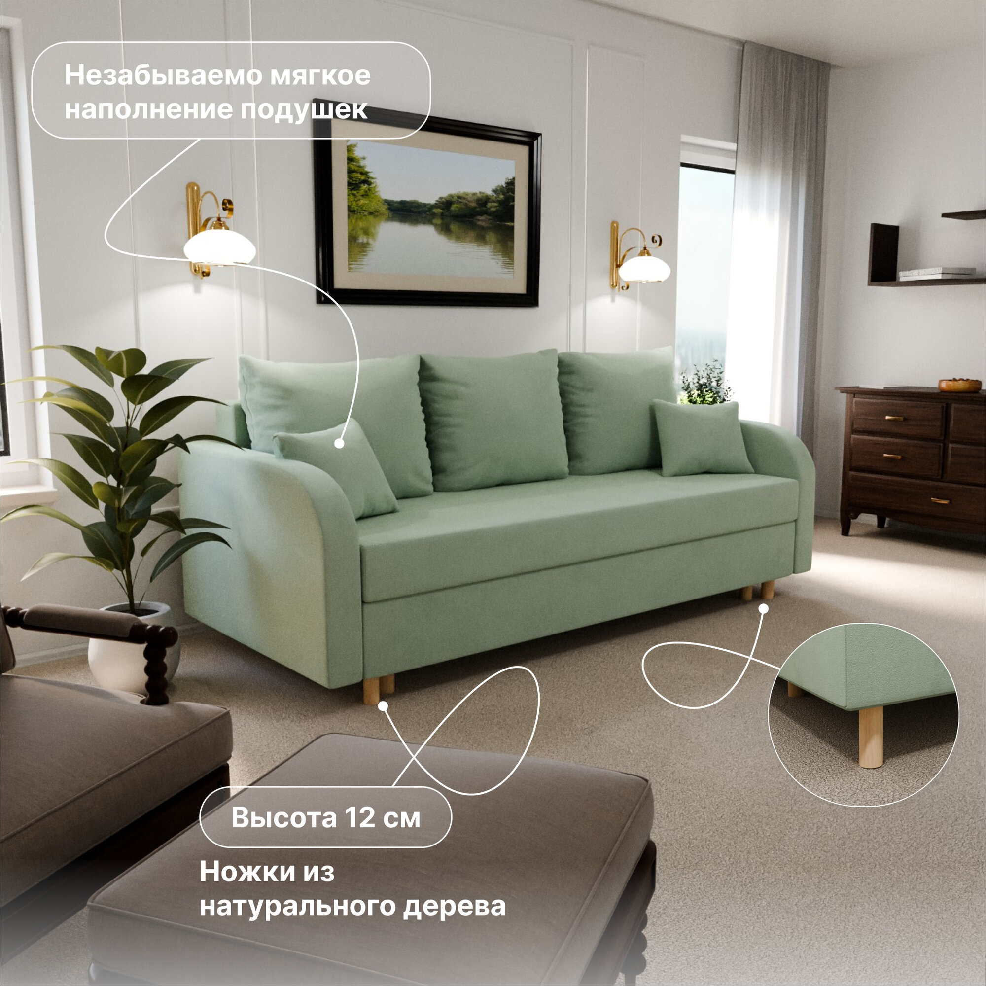 Диван раскладной, "Valensia", НПБ, Велютта люкс 42 размеры 220х80х100, светло-зеленый 40 000 ₽