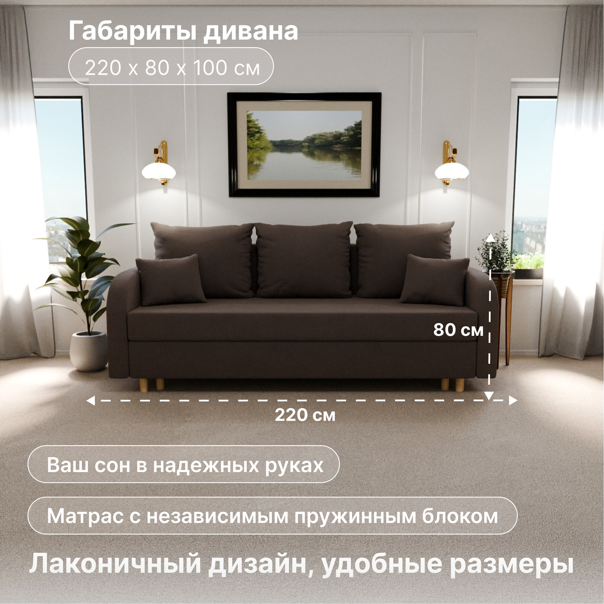 10 цен на Диван раскладной, "Valensia", НПБ, Велютта люкс 23 размеры 220х80х100, коричневый