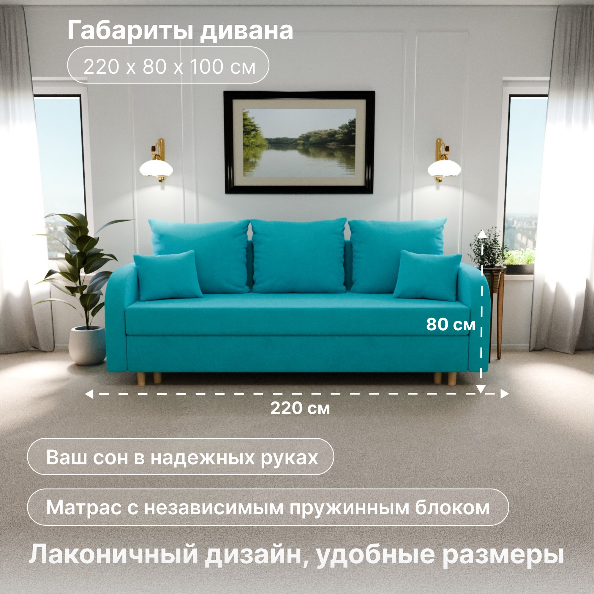Отзывы на Диван раскладной, "Valensia", НПБ, Велютта люкс 44 размеры 220х80х100, бирюзовый