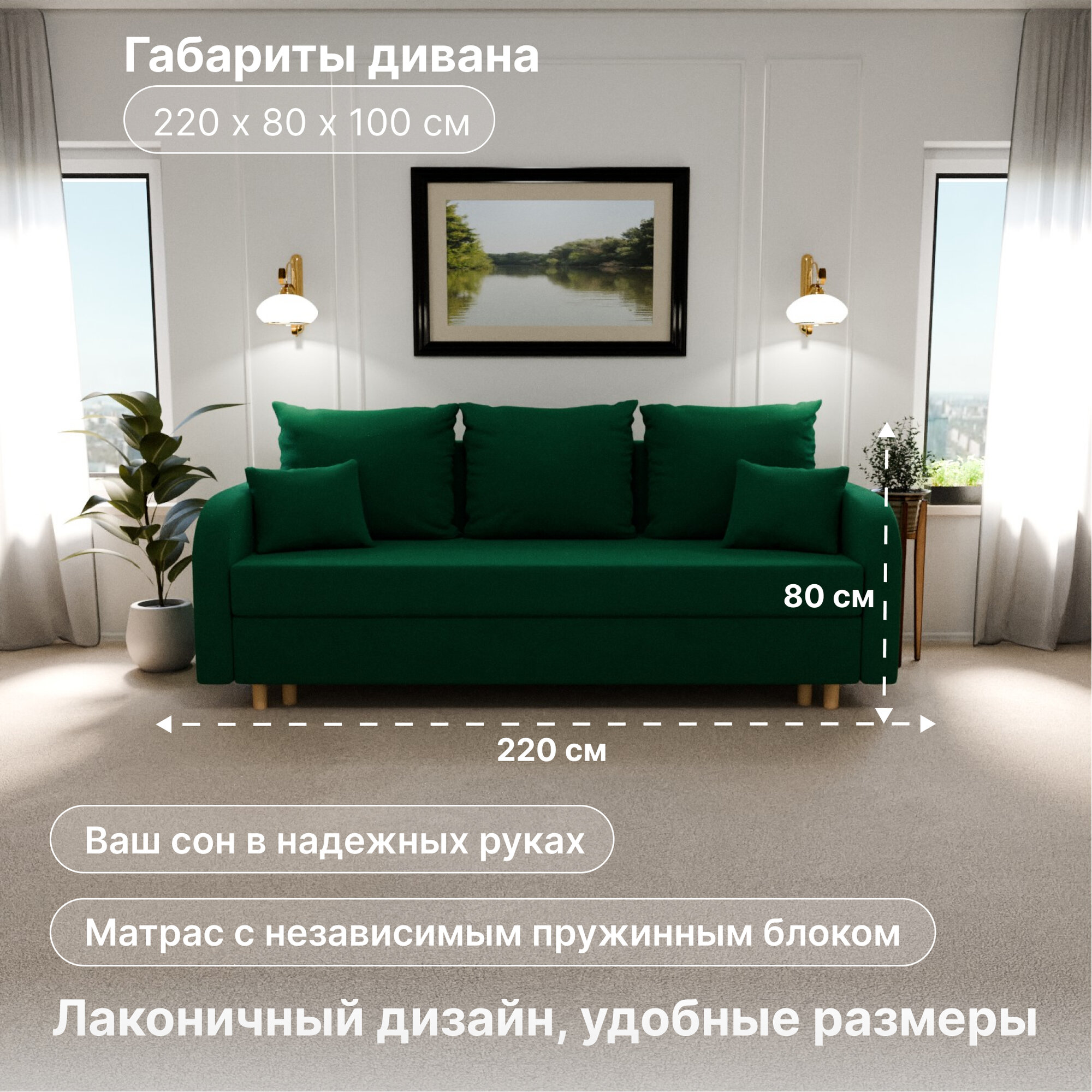 Диван раскладной, "Valensia", НПБ, Велютта люкс 33 размеры 220х80х100, зеленый информация: