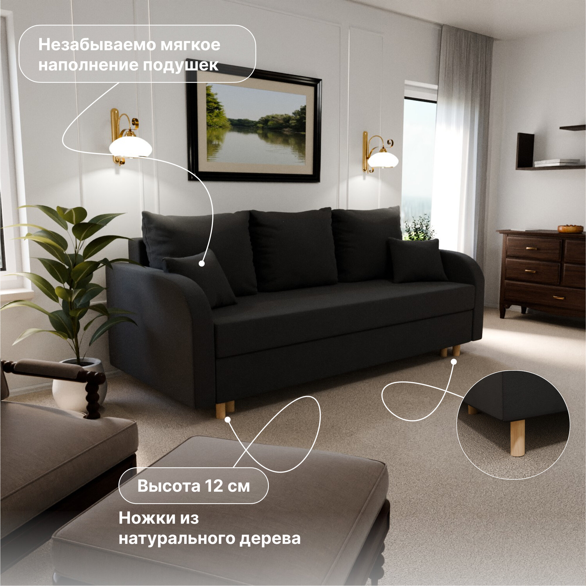 Отзывы на Диван раскладной, "Valensia", НПБ, Велютта люкс 99 размеры 220х80х100, черный