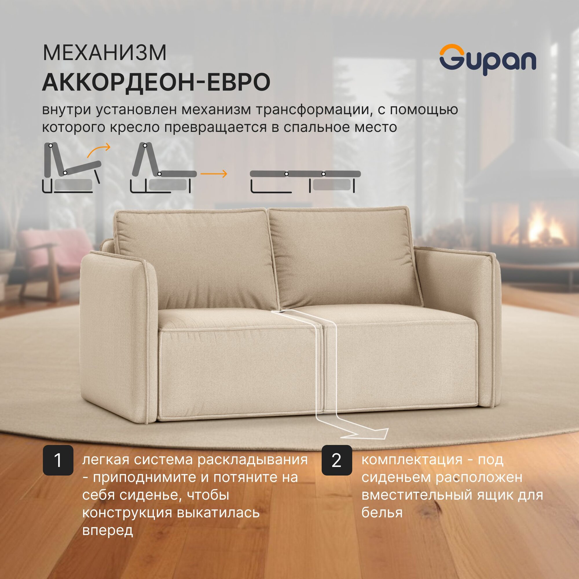Диван кровать Gupan Кафф 1 / Смайл Рогожка Savana Latte, раскладной, механизм аккордеон, беспружинный, с ящиком для белья 45 133 ₽