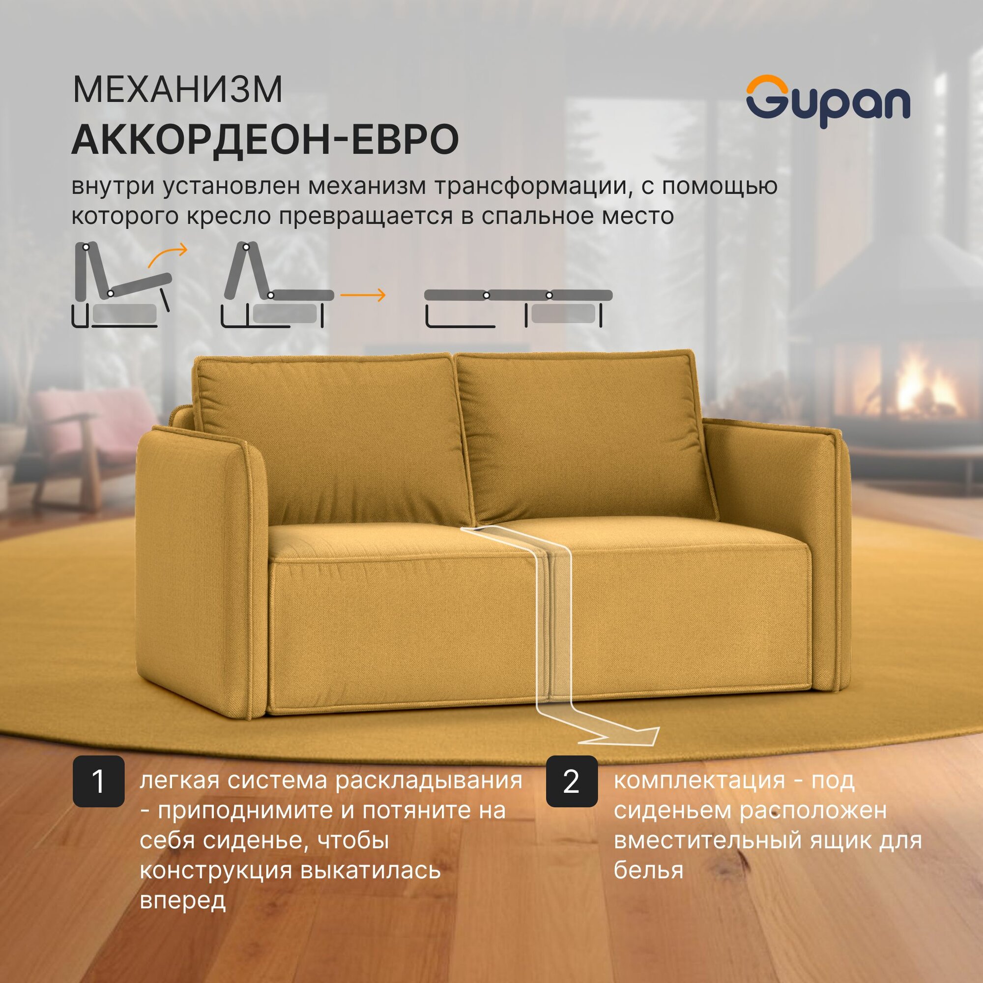 Диван кровать Gupan Кафф 1 / Смайл Велюр Amigo Yellow, раскладной, механизм аккордеон, беспружинный, с ящиком для белья информация: