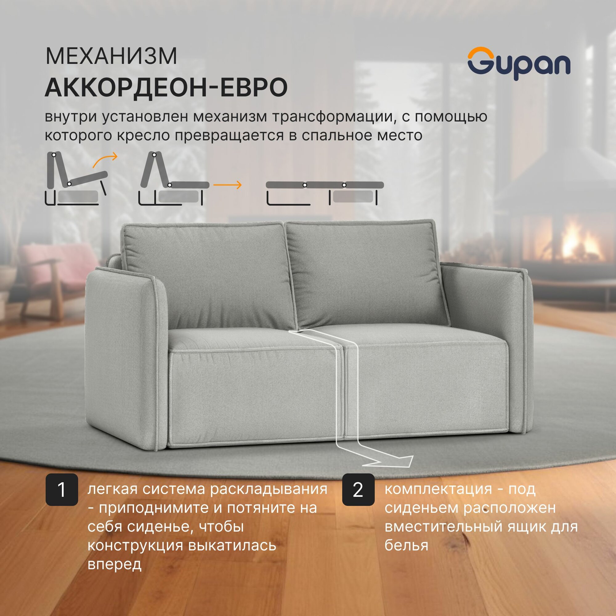 Отзывы на Диван кровать Gupan Кафф 1 / Смайл Велюр Amigo Ash, раскладной, механизм аккордеон, беспружинный, с ящиком для белья