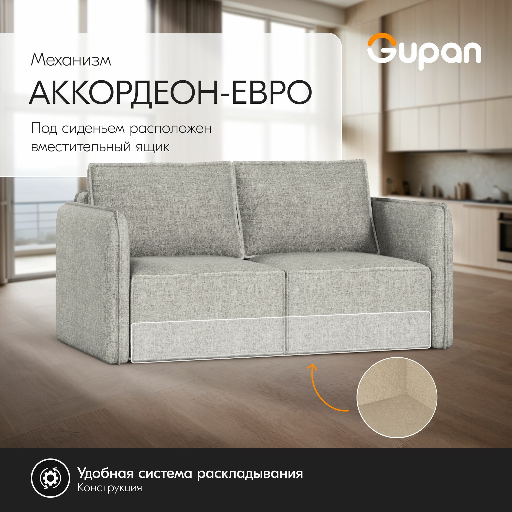 10 цен на Диван кровать Gupan Кафф 1 / Смайл Рогожка Savana Milk, раскладной, механизм аккордеон, беспружинный, с ящиком для белья