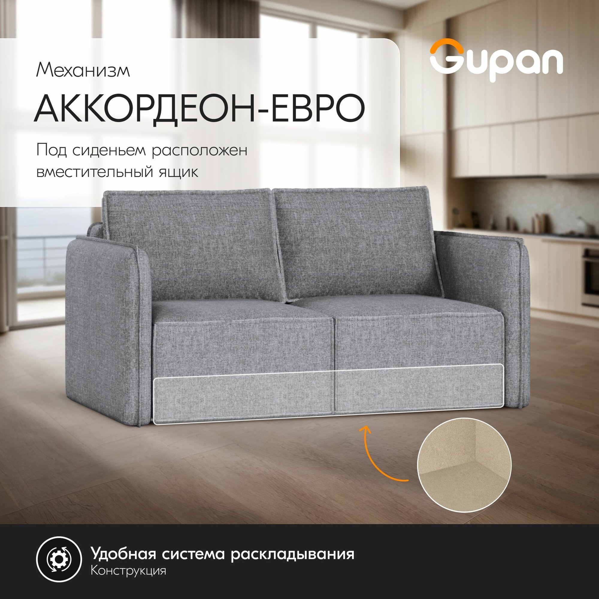 10 цен на Диван кровать Gupan Кафф 1 / Смайл Рогожка Savana Mouse, раскладной, механизм аккордеон, беспружинный, с ящиком для белья