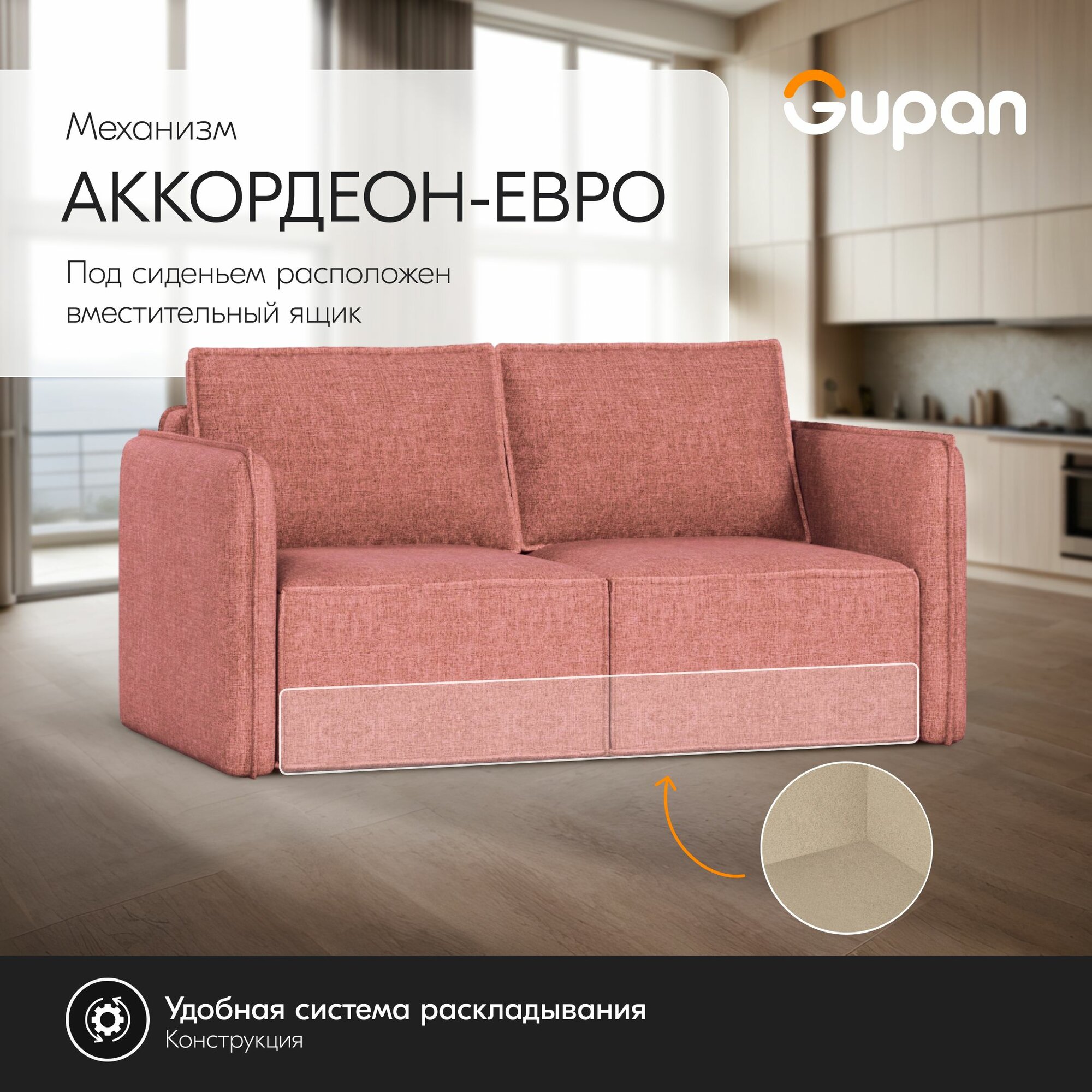 10 цен на Диван кровать Gupan Кафф 1 / Смайл Рогожка Savana Coral, раскладной, механизм аккордеон, беспружинный, с ящиком для белья