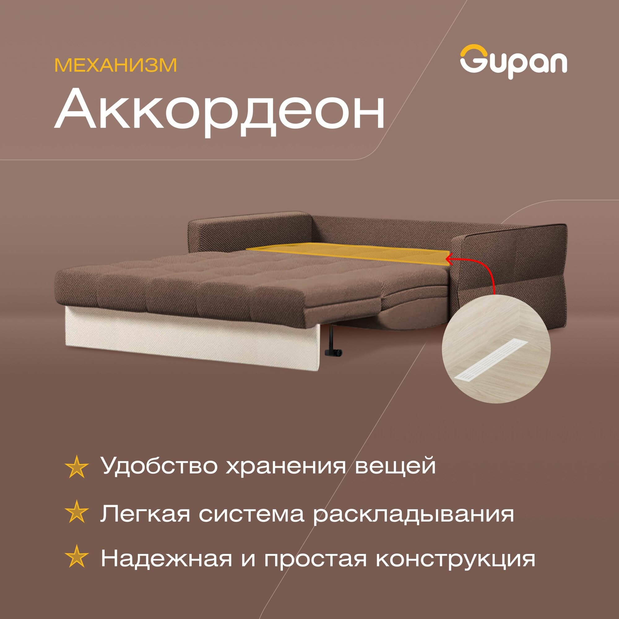 Отзывы на Диван кровать Gupan Болеро Велюр Amigo Chocolate, раскладной, механизм аккордеон, беспружинный, с ящиком для белья