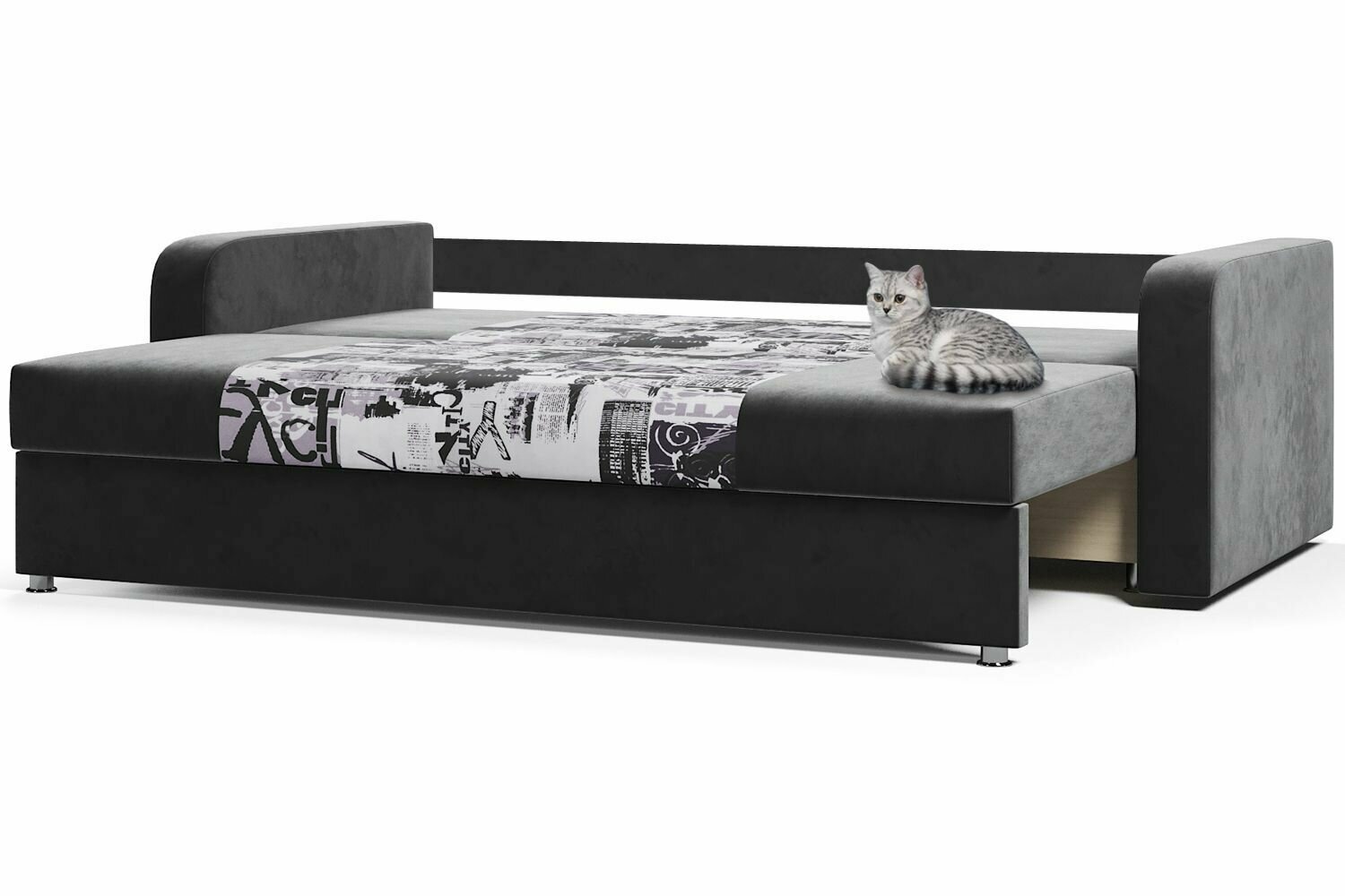 Отзывы на Диван кровать раскладной, еврокнижка, черный велюр, принт Сити, Леон