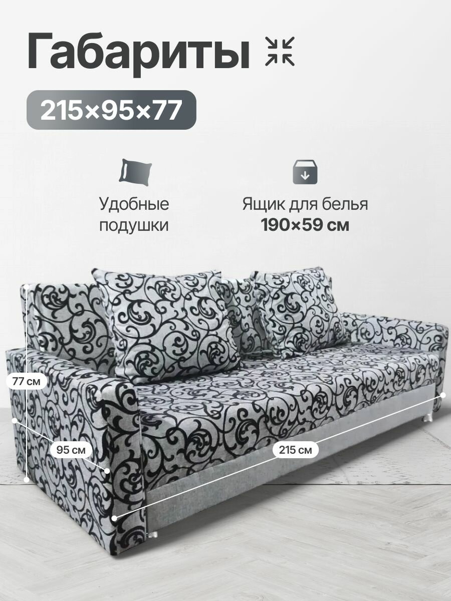 Диван раскладной прямой, 215х95х77, еврокнижка, велюр, серый принт Москва, Леон 16 000 ₽