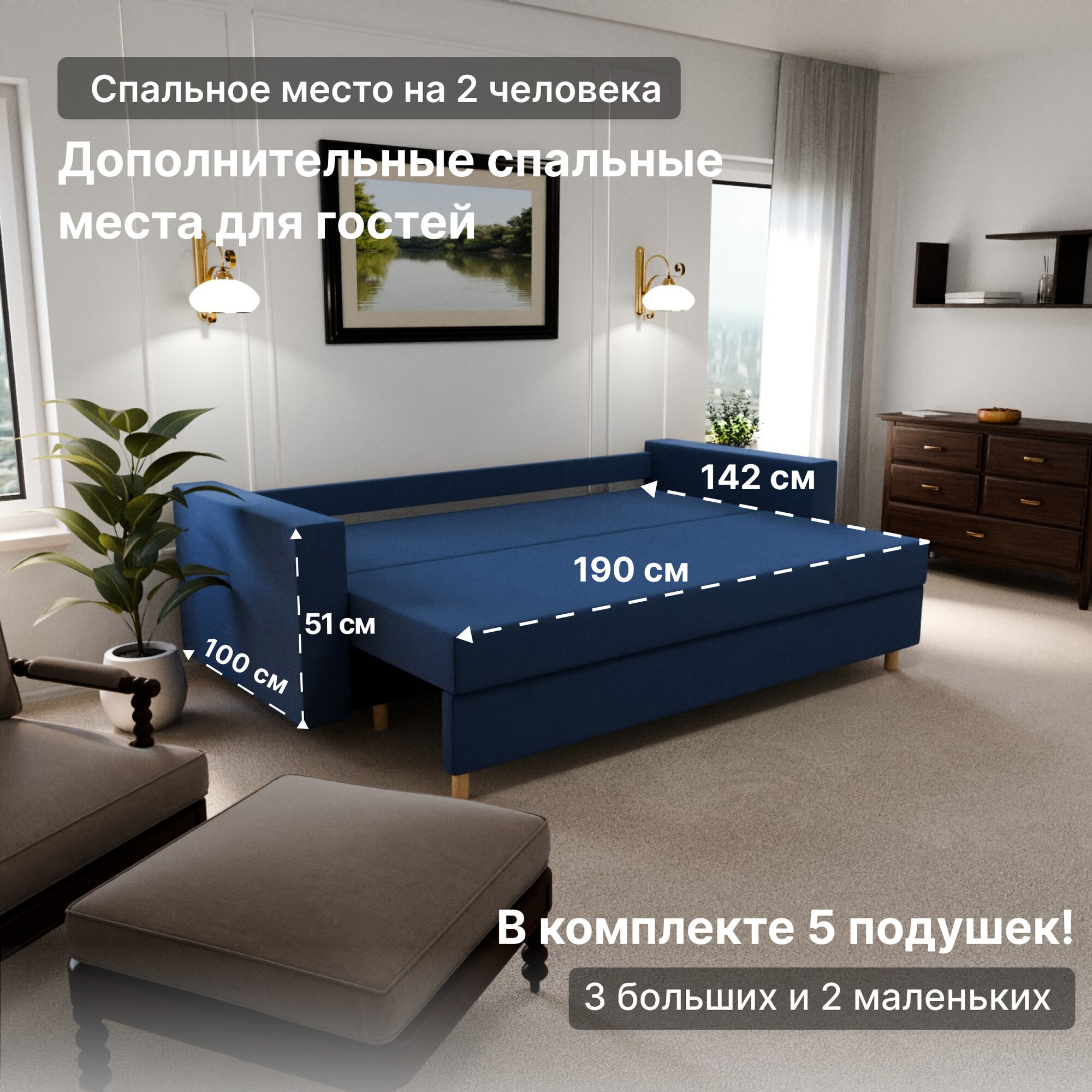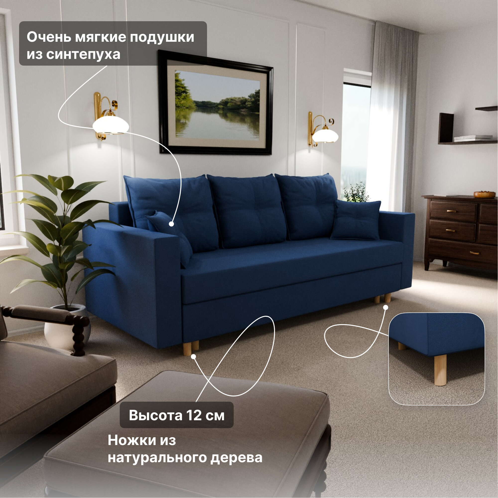 Отзывы на Диван, диван-кровать, диван раскладной "Гармония" ППУ, Велютта люкс 26, размеры 220х80х100, синий