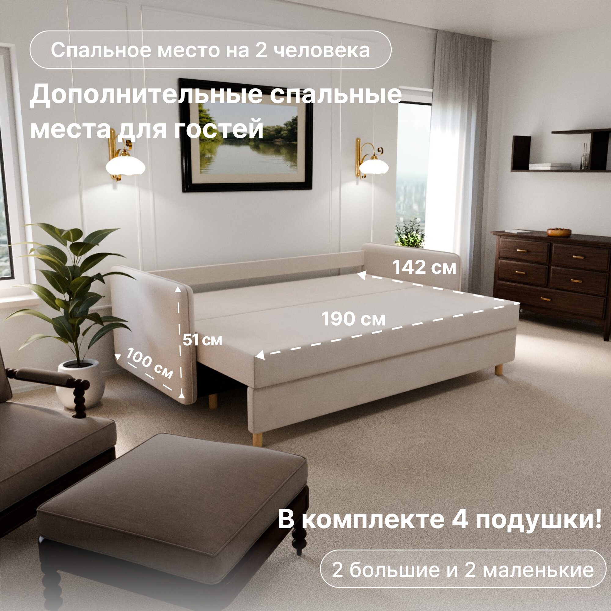 Диван, диван-кровать, диван раскладной "Комфорта" ППУ, Велютта люкс 07, размеры 210х80х100, бежевый 31 062 ₽