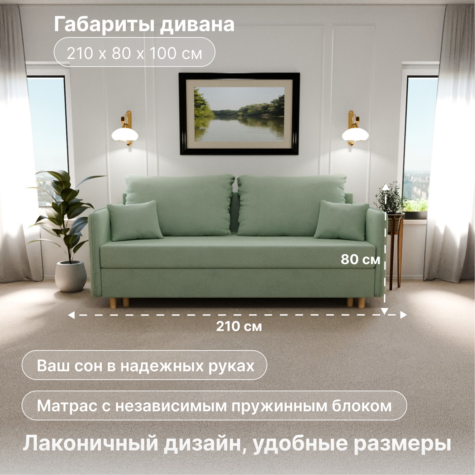 10 цен на Диван, диван-кровать, диван раскладной "Комфорта" ППУ, Велютта люкс 14, размеры 210х80х100, фисташковый