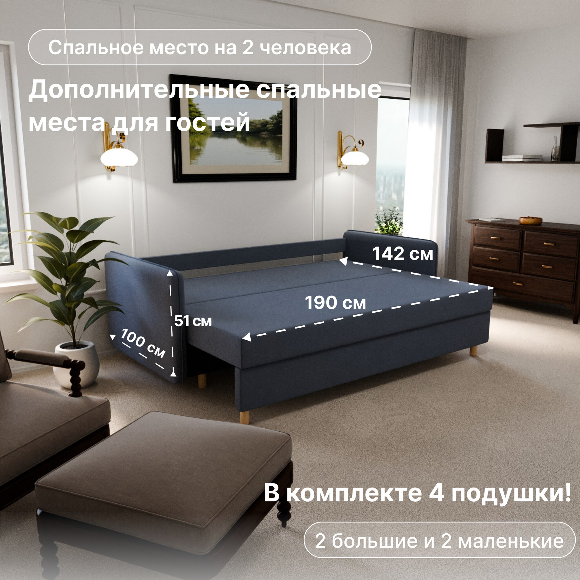 10 цен на Диван, диван-кровать, диван раскладной "Комфорта" ППУ, Велютта люкс 48, размеры 210х80х100, серо-синий