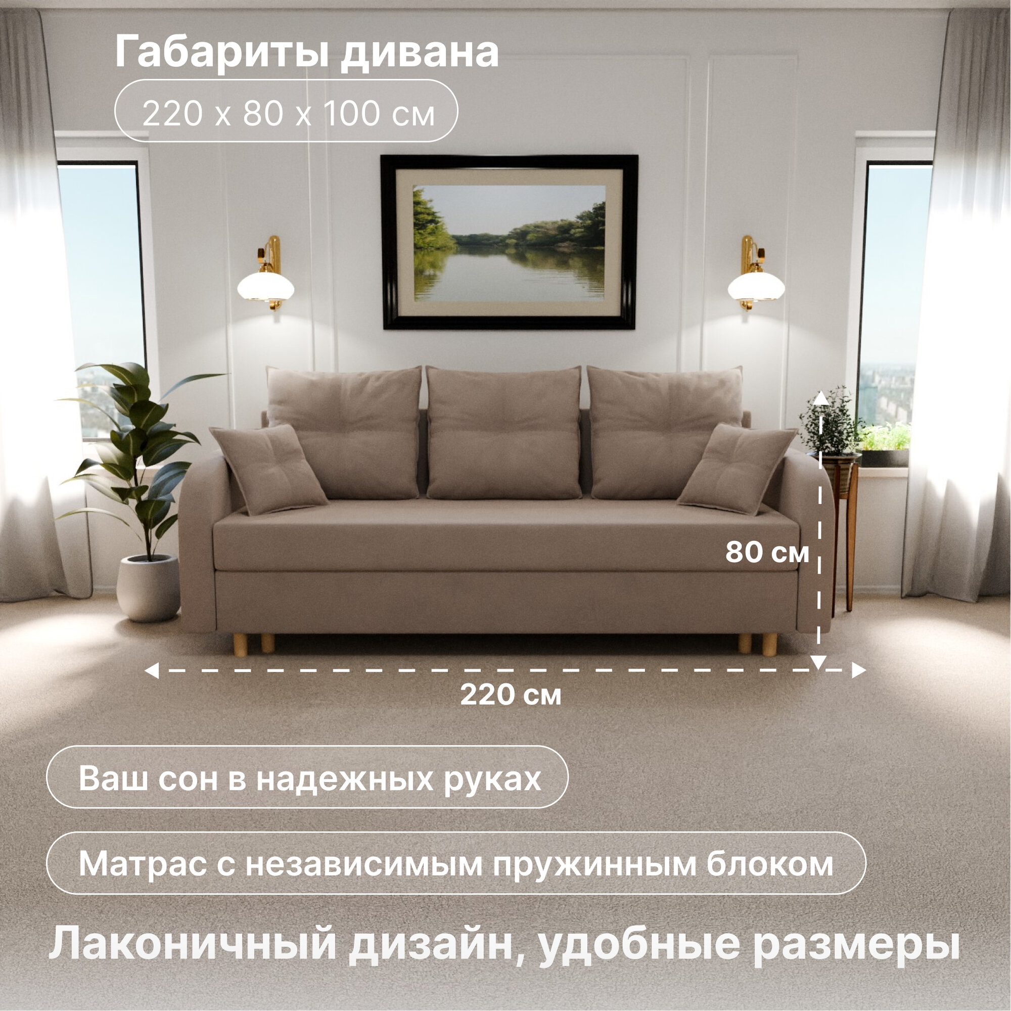 Диван, диван-кровать, диван раскладной "Генри" НПБ, Велютта люкс 07, размеры 220х80х100, бежевый информация: